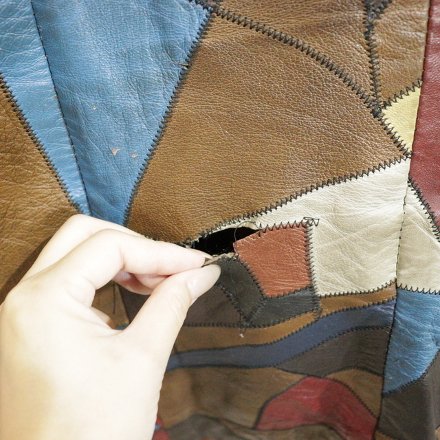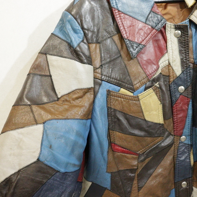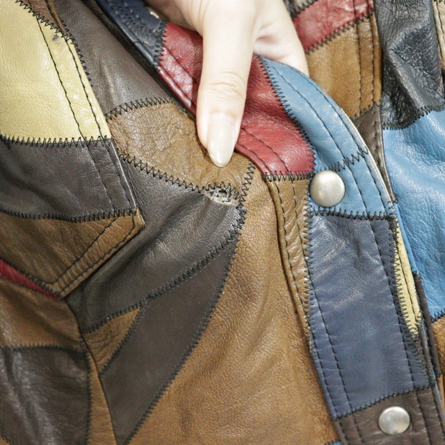 商品名 n936 70sビンテージ GENUINELEATHER パッチワーク レザージャケット■1970年代製 表記24サイズ レディース マルチカラー アメカジ 古着