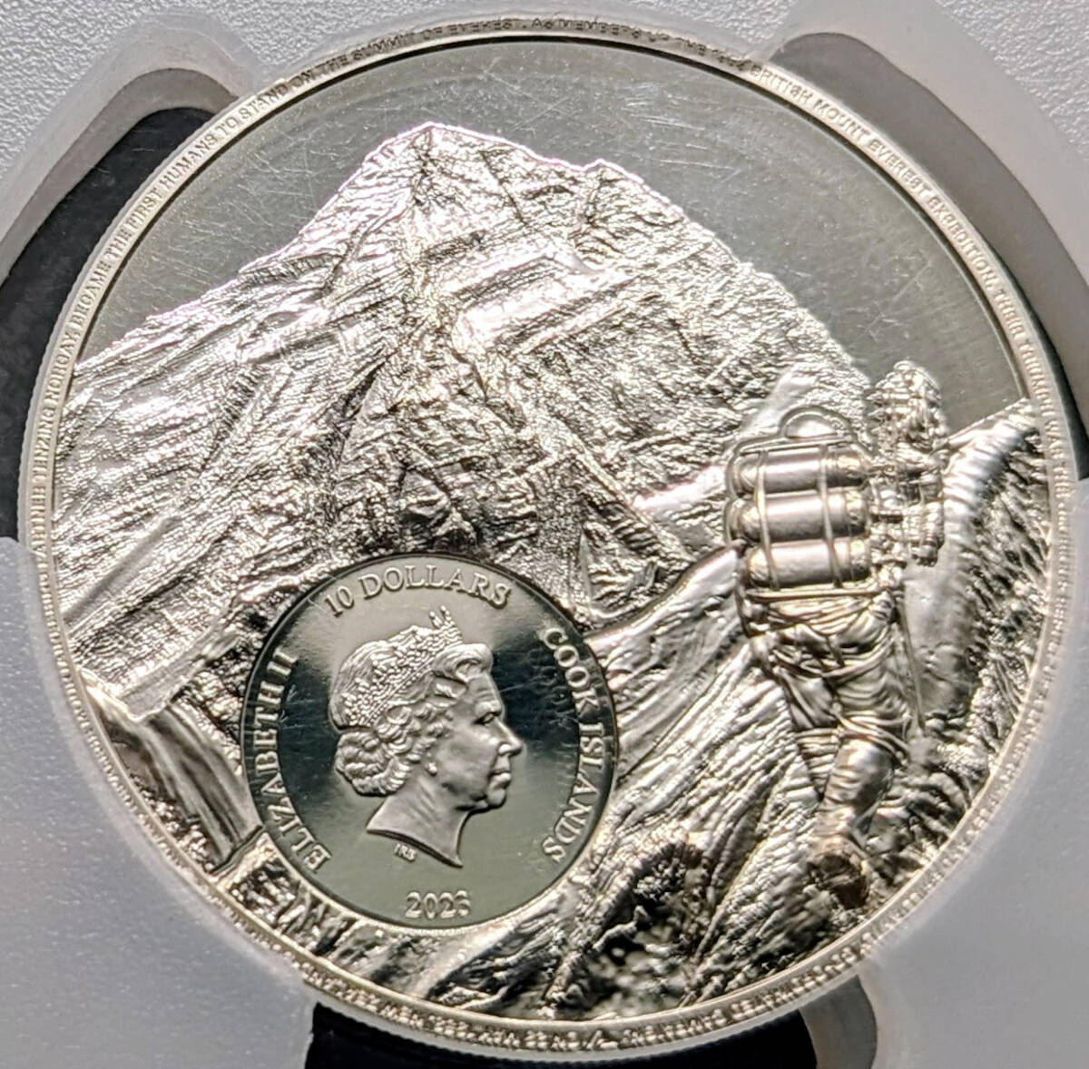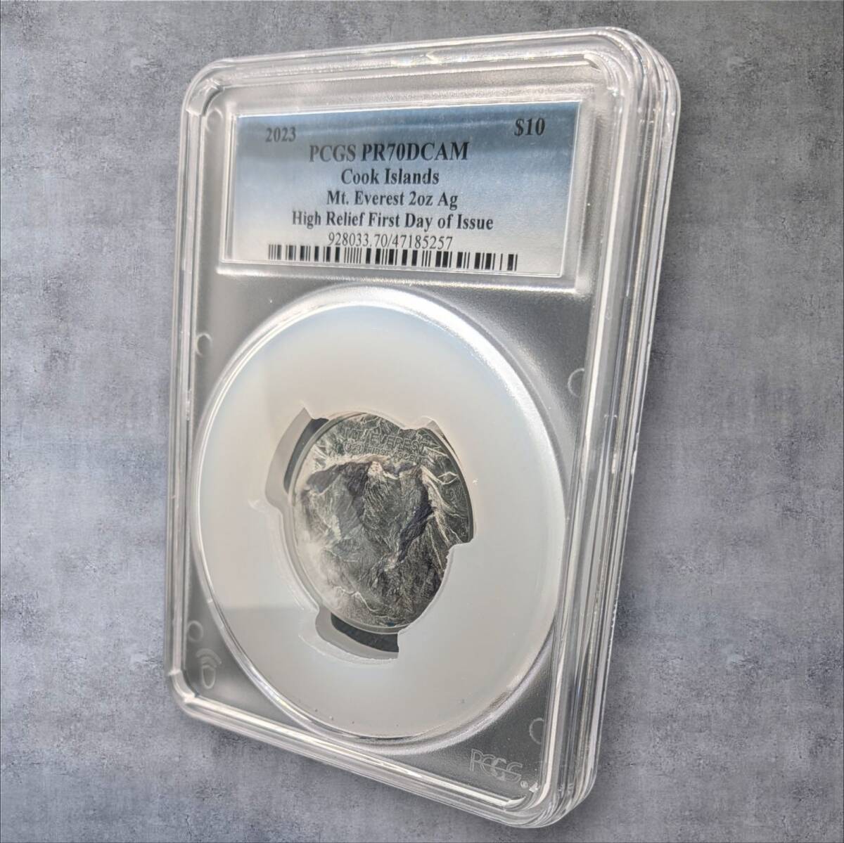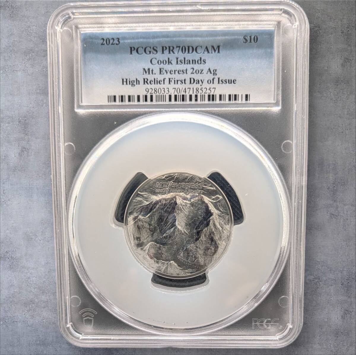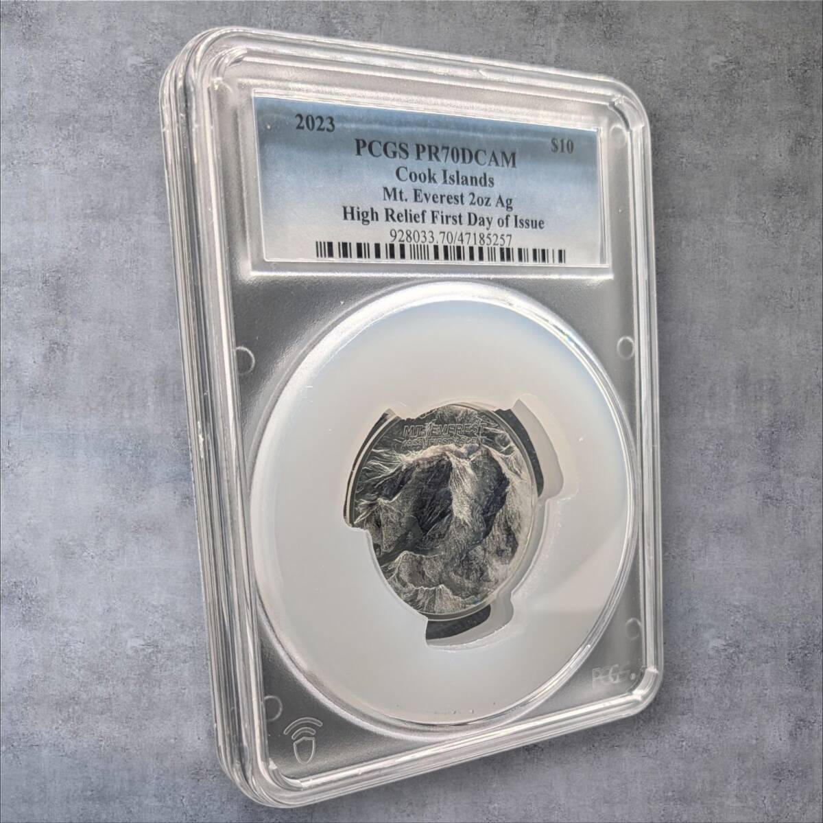★最高鑑定 エベレストの迫力★2023年 クック諸島 PCGS PR70 DEEP CAMEO 10ドル 銀貨 エリザベス モダンコイン 自然 登山 資産保全