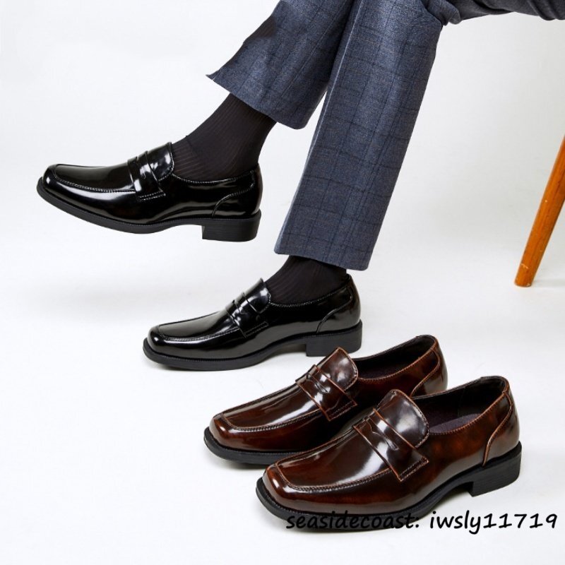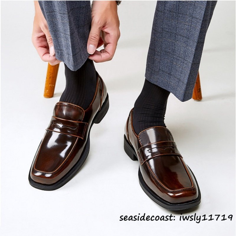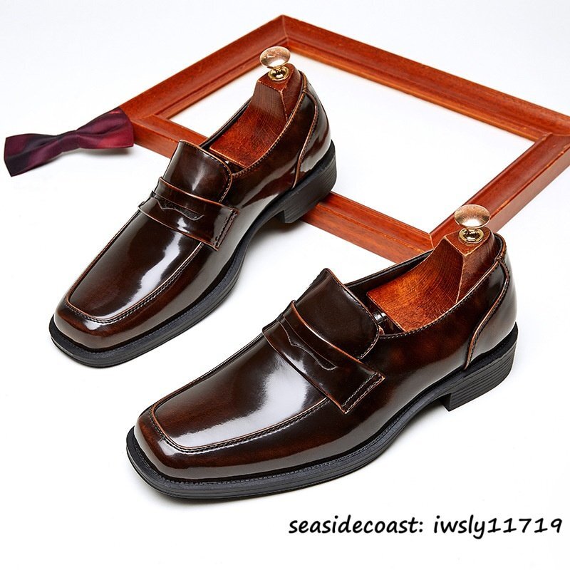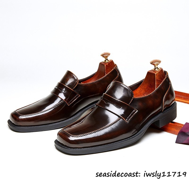 限定セール*新品 ローファー メンズ 本革 ビジネスシューズ イギリス風 スリッポン 牛革レザーシューズ スクエアトゥ 通勤 珈琲色 26.0cm