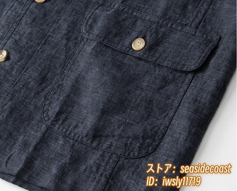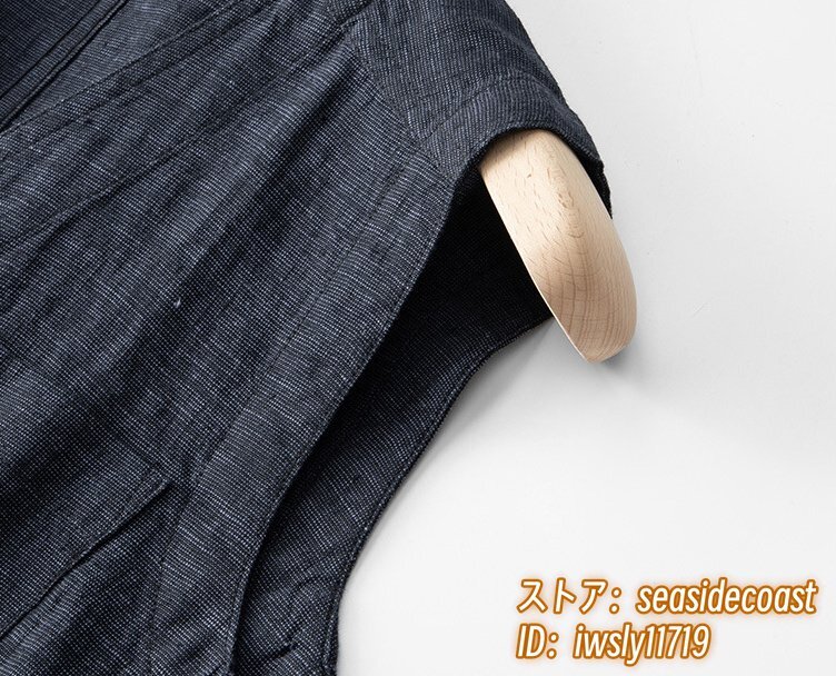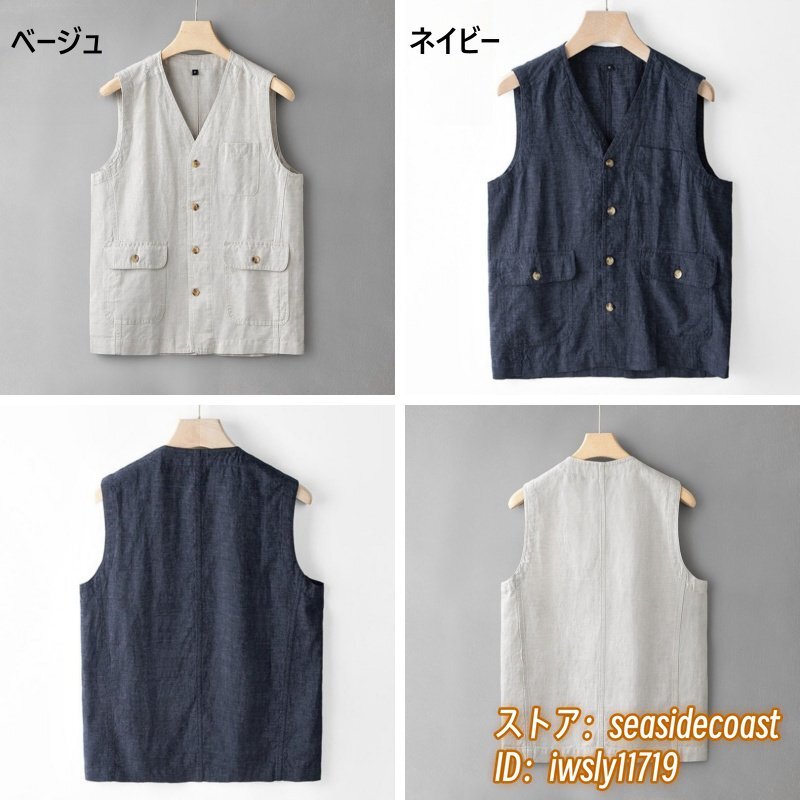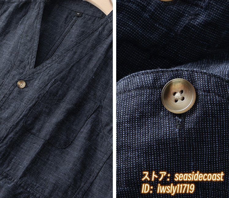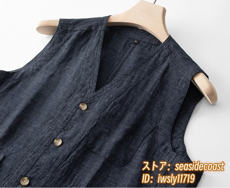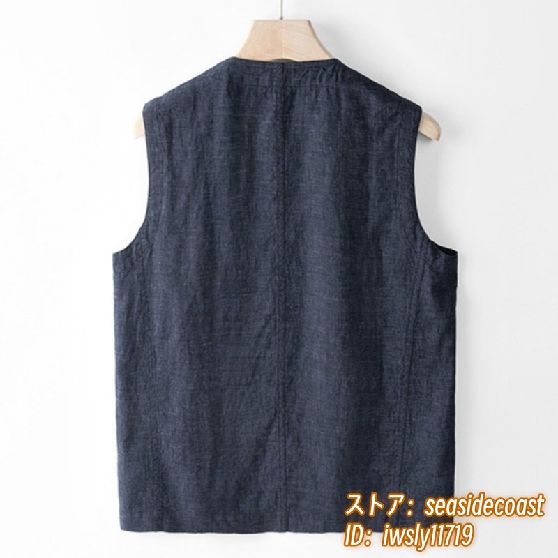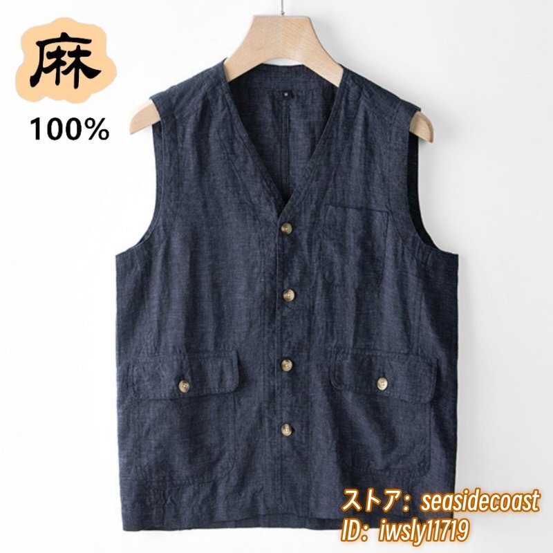 極美品◆リネンベスト メンズ 新品 亜麻 リネンジャケット アウター 前開き ショート丈 レイヤード 春夏 Vネック 薄手 サマー ネイビー 3XL