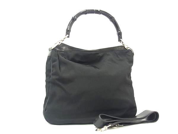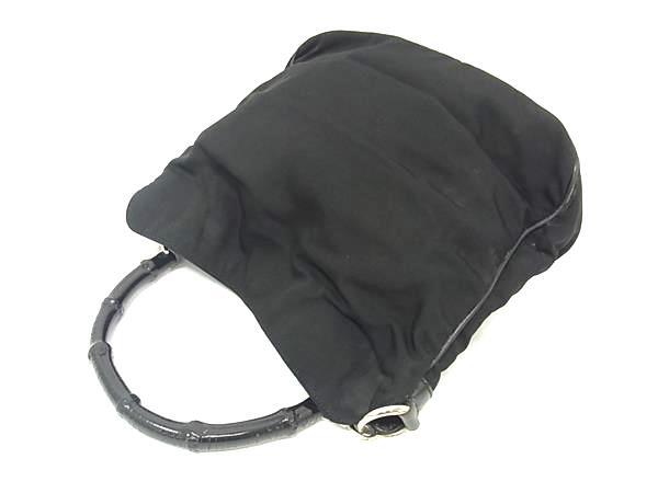 1円 GUCCI グッチ 001 1638 001364 バンブー ナイロンキャンバス ワンハンドル ハンドバッグ ショルダー 肩掛け ブラック系 FV0679