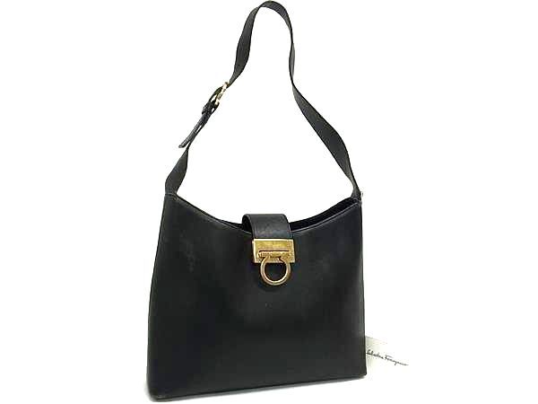 1円 Salvatore Ferragamo フェラガモ AQ 21 8662 ガンチーニ レザー ワンショルダーバッグ レディース ブラック系 FV0421