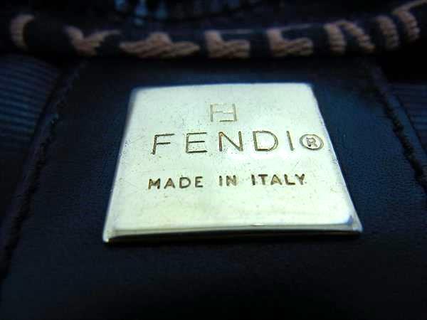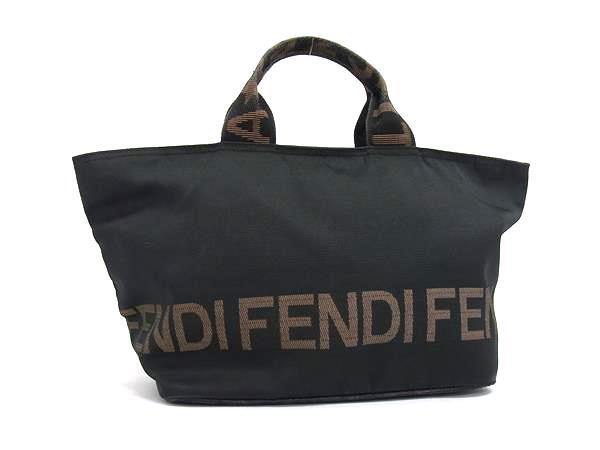 1円 FENDI フェンディ キャンバス ハンドバッグ トートバッグ レディース メンズ ブラック系×ブラウン系 FV0608