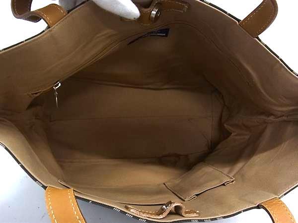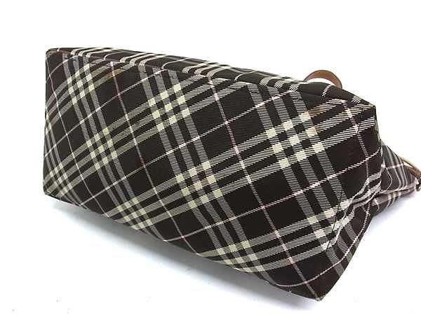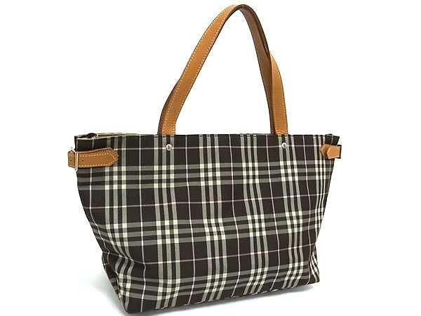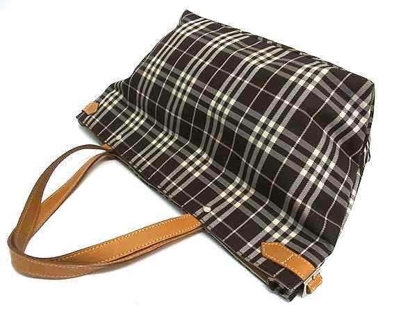1円 BURBERRY バーバリーブルーレーベル ノバチェック ナイロンキャンバス×レザー トートバッグ ショルダー 肩掛け ブラウン系 FV0494