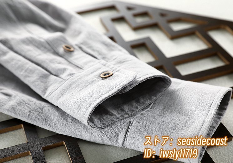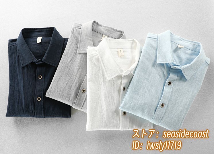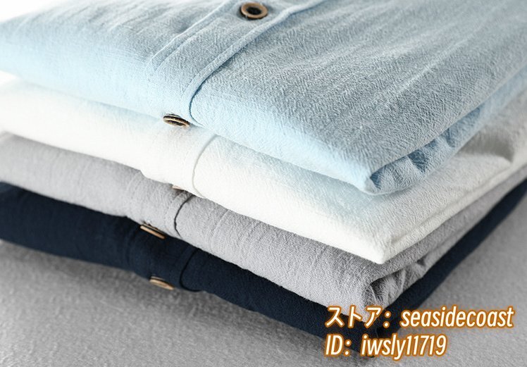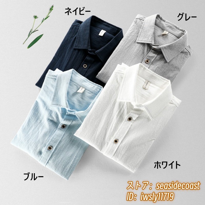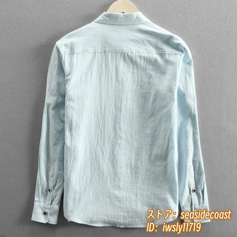 春夏新品 リネンシャツ メンズ 長袖シャツ 綿麻シャツ 無地 細身 ワイシャツ ビジネス カジュアル トップス 大きいサイズ有り ブルー 2XL