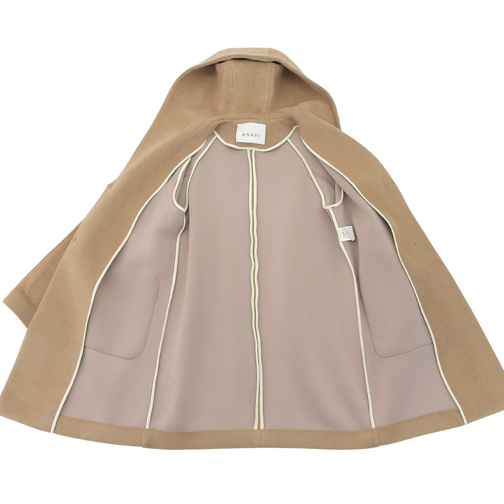美品 ANAYI アナイ ビックカラー フーディー コート レディース ベージュ 38 21年