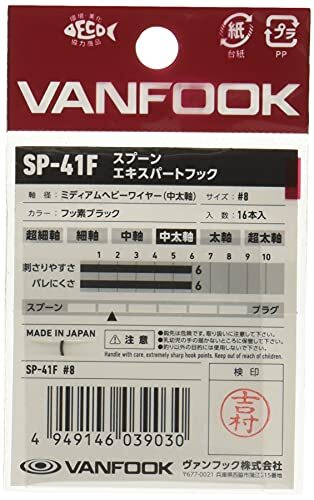 #8・フッ素ブラック 50本入り SP-41F・・Size:50本入りStyle:#8・フックサイズ:#8・フックカラー:フッ素ブラック・バーブレス仕様 / おすすめ用途:エリアトラウトフック・品番:SP-41F・入数:50本入り説明 人気の「スプーンエキスパートフックシリーズ」がリニューアル! 昨今のタックル進化に合わせ「改良型フッ素コーティングの採用」「材料・製法の改良」を行うことで、従来品よりも高い「防錆性能」「フック強度・耐久性」を実現しました! また、製品のリニューアルに合わせ「パッケージ」「入数」「品番」も変更いたしました! 「SP-41F」はスプーンエキスパートフックシリーズ中最もヘビー ワイヤー仕様のモデル! 大型トラウトにも余裕で対応できるフトコロ強度があります。更にフッキング性能を追求したフッ素ブラックモデルは大型魚の上顎でさえ も簡単に貫きます。