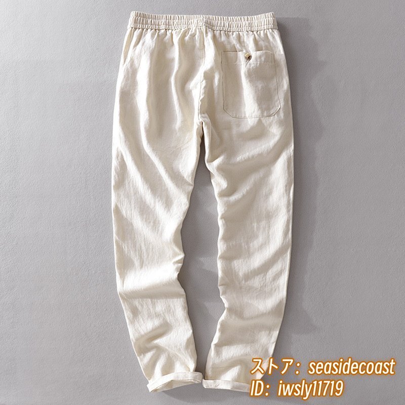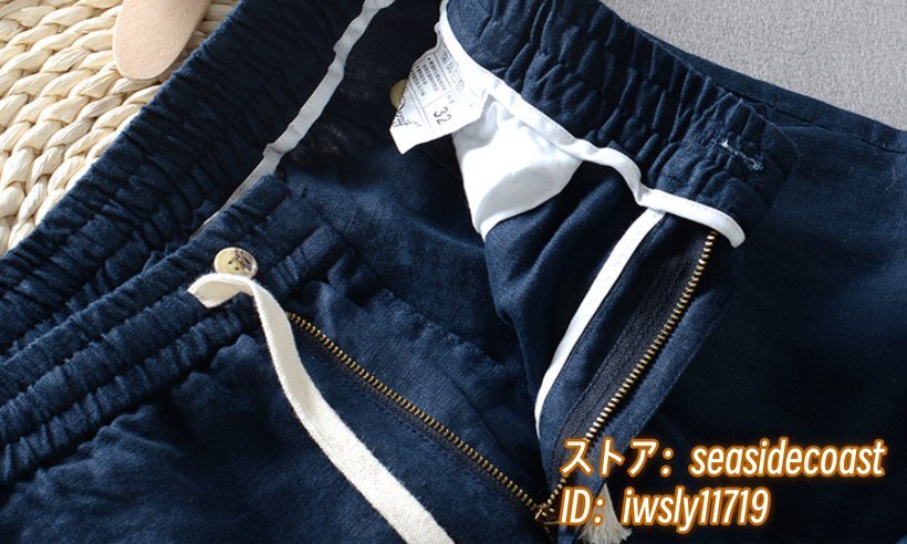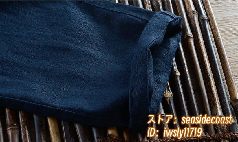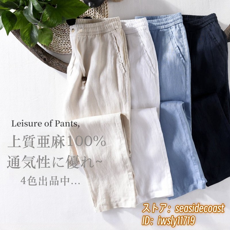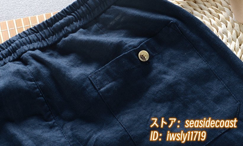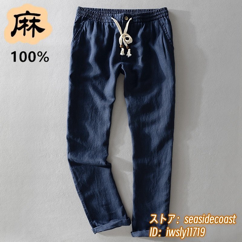 夏新品■サマーパンツ リネンパンツ 麻100% メンズ スラックス チノパン 紳士 ロングパンツ ストレート 無地 イージーパンツ 紺色 32