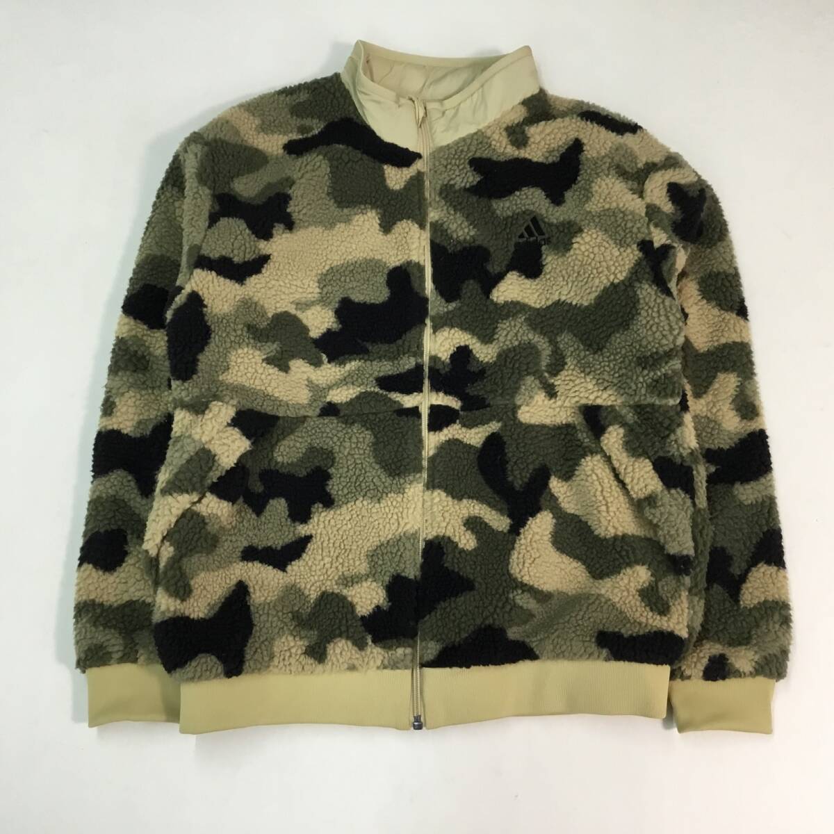 ■ adidas アディダス ブルゾン カーキ サイズ 160 キッズ リバーシブル アウター 上着 カモ 迷彩柄 ボア ナイロン 0.64kg