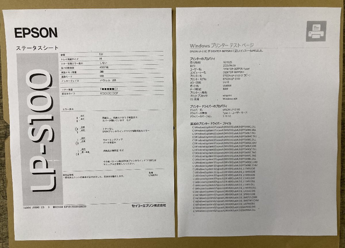 用紙トレイからの印刷動作確認済み。 連続印刷動作確認済み。 USB動作確認済み。 パラレルは動作環境が無いため動作未確認。 |