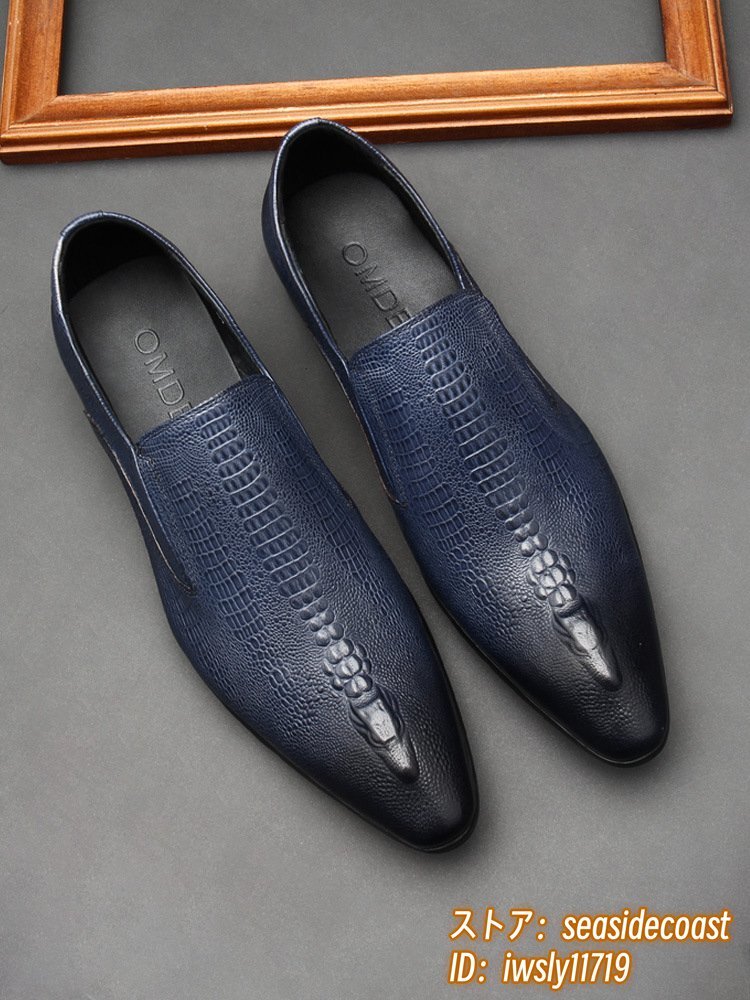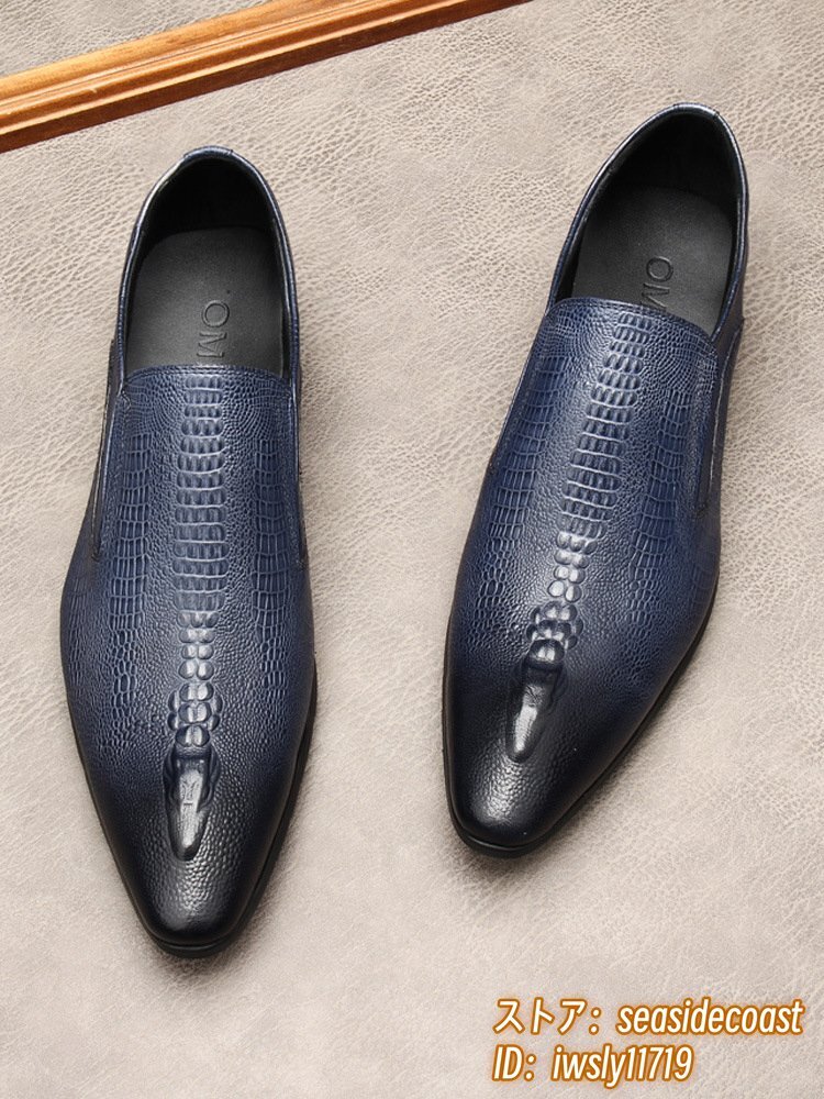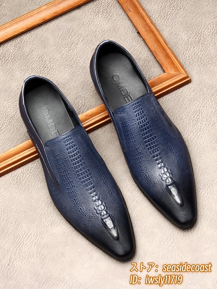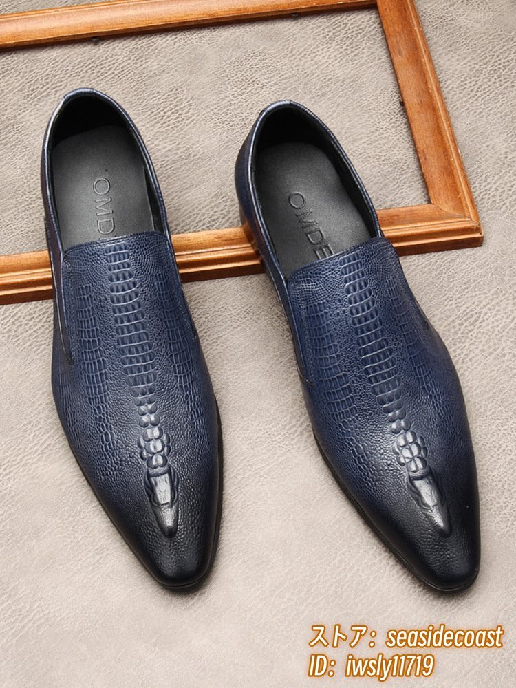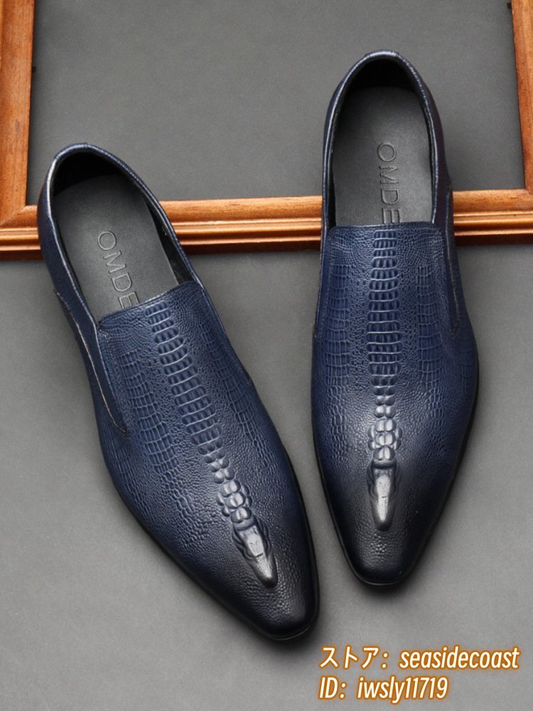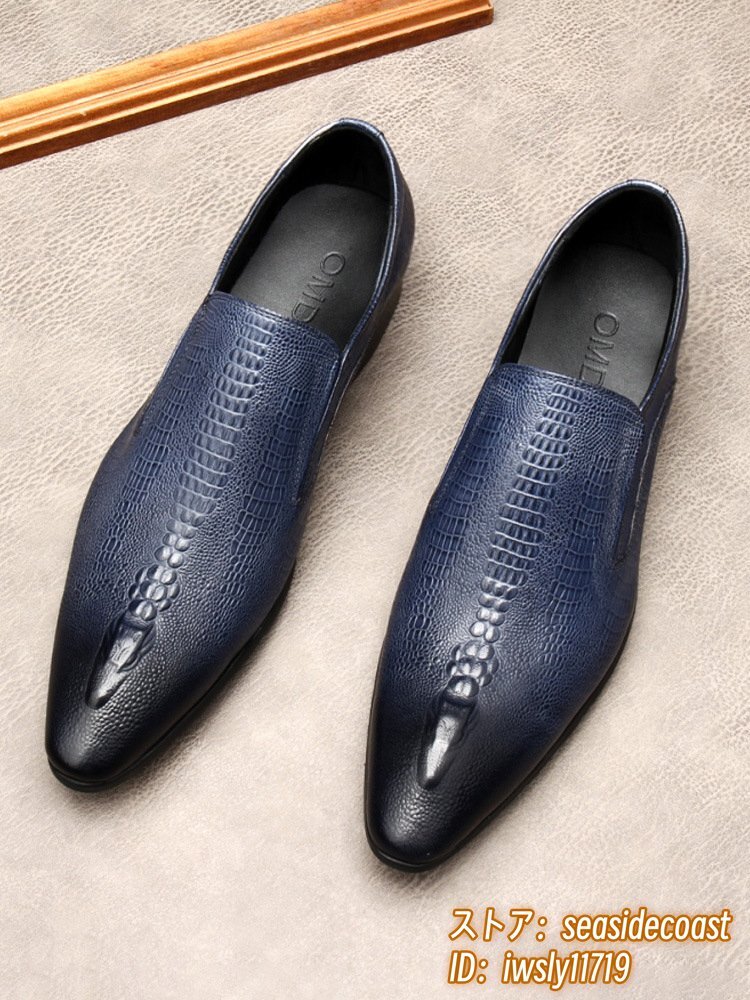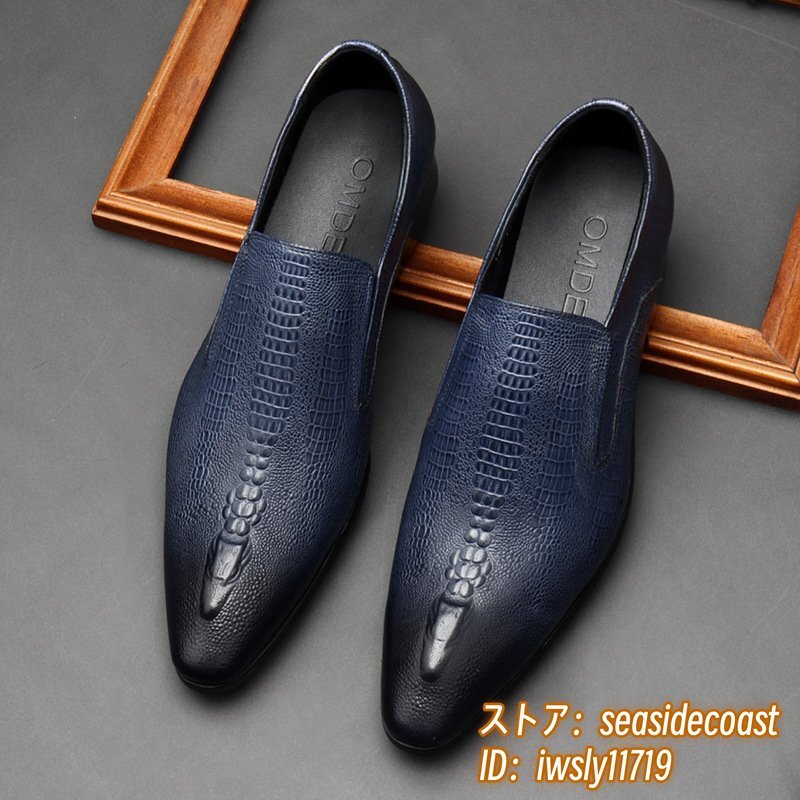 定価11万超★最高級 牛革 メンズ ビジネスシューズ 本革 レザーシューズ 超希少 職人手作り 紳士靴 宴会 フォーマル 革靴 ブルー 27.5cm