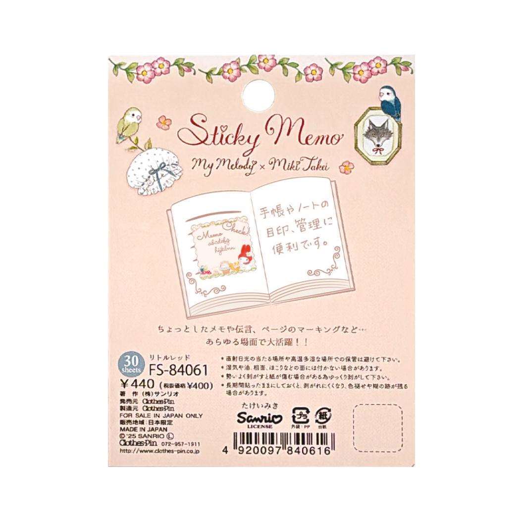 サンリオキャラクターズxたけいみき 付箋 ふせん リトルレッド マイメロディ サンリオ クローズピン 新学期準備文具 事務用品 付