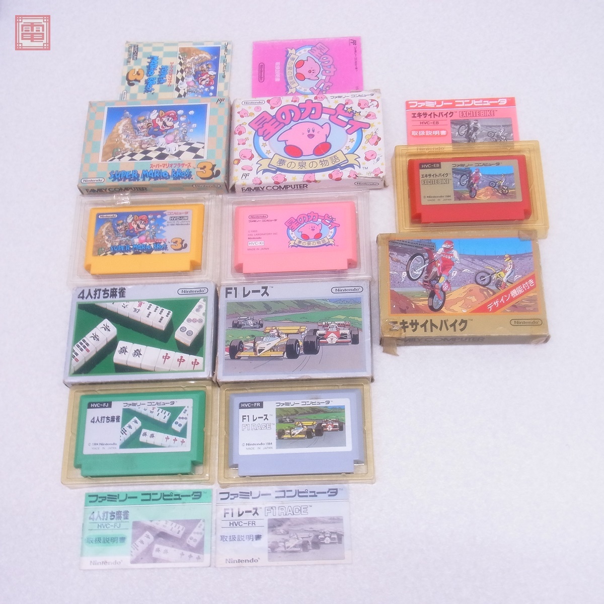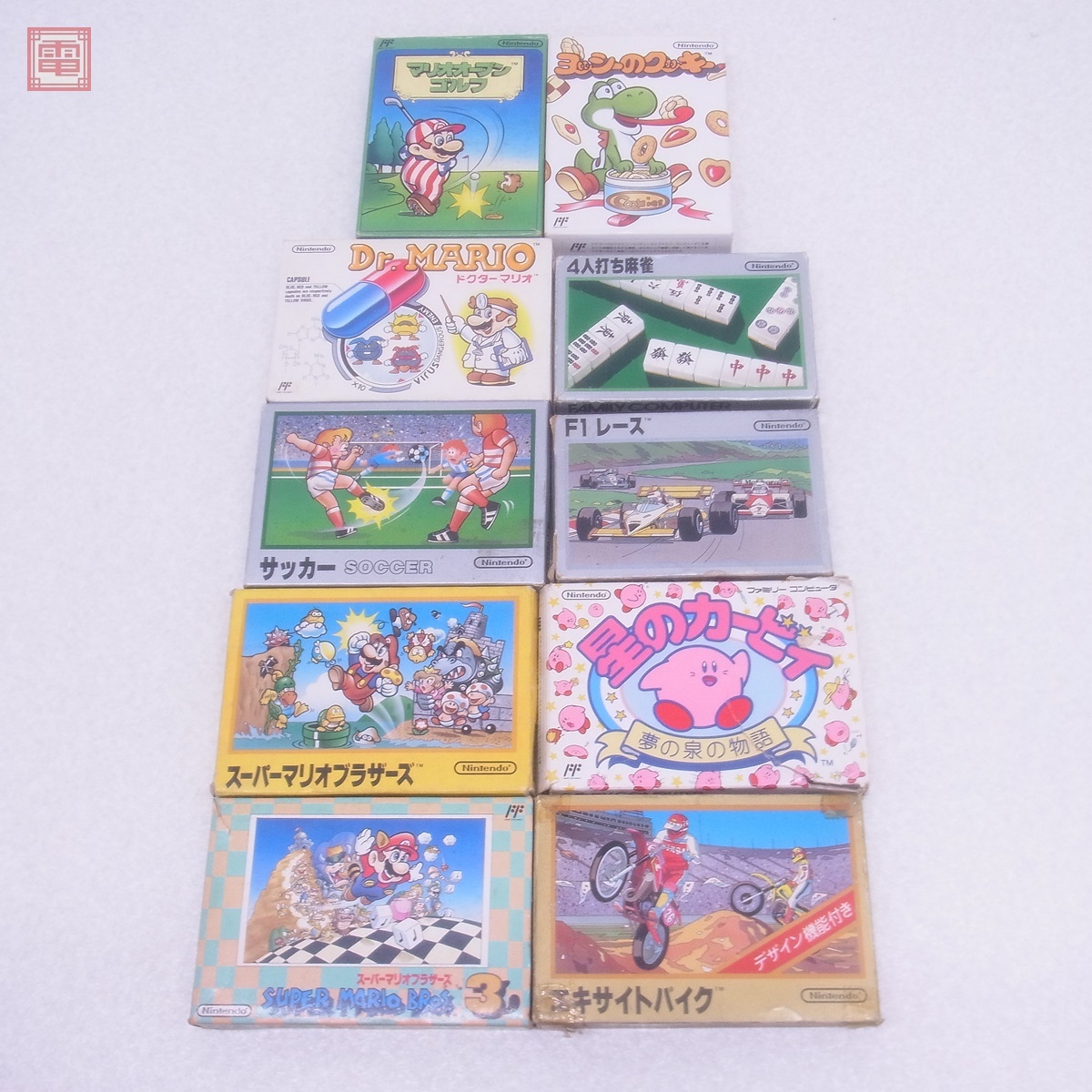 FC ファミコン 星のカービィ/F1レース/スーパーマリオブラザーズ 等 まとめて 10本セット 任天堂関連 箱説付 ダブりなし ■こちらの商品は【動作チェック等】を一切行っていないため、どの様な不具合が生じましても当店では交換・返金・返品等の対応はできません。 ■ご理解ご納得いただける方のみご入札をお願いいたします。 ■ケースにスレ、角スレ、汚れ、ヤケ、キズがあります。 ■取扱説明書にスレ、汚れ、折れ、イタミがあります。 ■カセットにスレ、キズ、汚れ、ヤケがあります。 ■上記以外は未チェックです。 ■詳細なチェック、清掃等は行っておりませんので、画像、記載以外のダメージがある可能性があります。予めご了承ください。 ■写真のものが全てです。付属物の有無や状態については写真からご判断ください。 ■チェックに使用したモニターやチェック機器等は、特に表記がない限りは付属いたしません。 ■商品到着後、当店の保証期間中は、商品及び箱や取説、付属品などを1つでも廃棄や破損をしないようにお願い致します。廃棄や破損をした場合、商品に問題があった場合でも対応や返金などの対処ができなくなります。 | |||