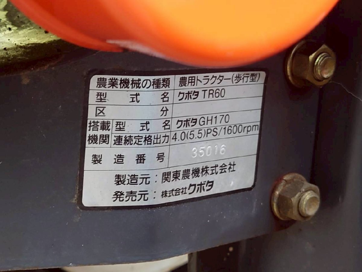 鳥取発【送料別】クボタ 管理機 TR60 機番:35016 耕運幅500mm 島根 岡山 広島 兵庫