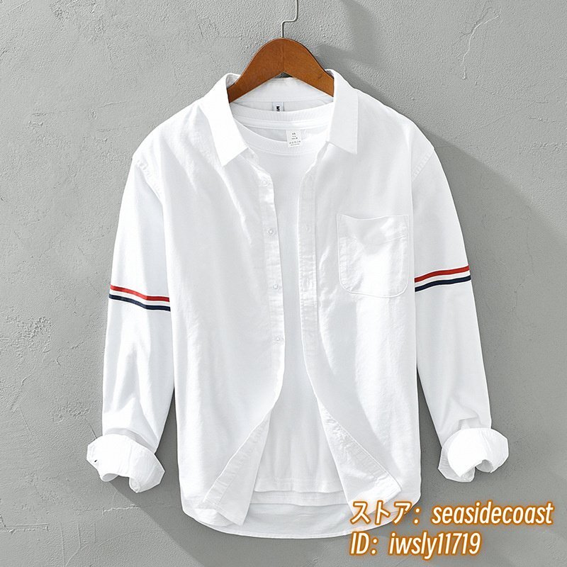 新品★メンズシャツ 長袖シャツ ワイシャツ 紳士シャツ 無地 お洒落 ボーダー 細身 スリム カジュアル 心地良し 四色選択可 ホワイト 2XL