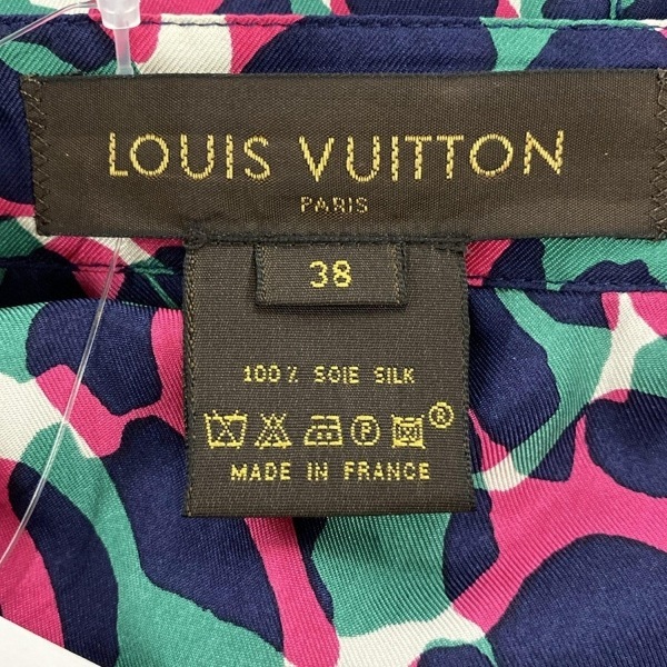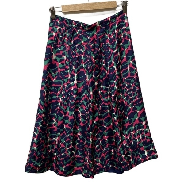 ルイヴィトン LOUIS VUITTON ロングスカート サイズ38 M - ダークネイビー×グリーン×マルチ レディース シルク 美品 ボトムス