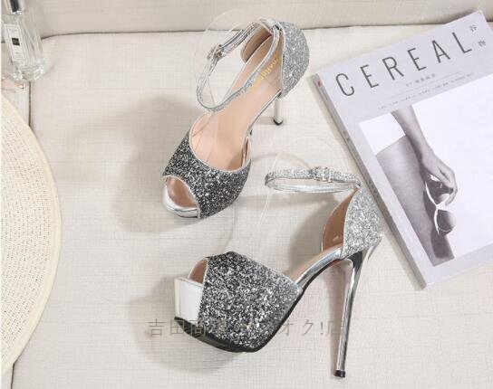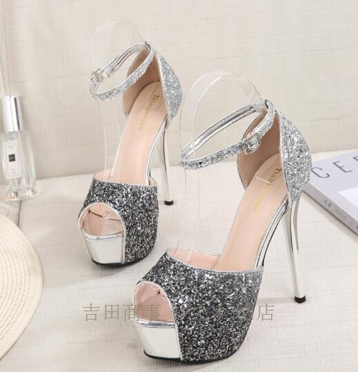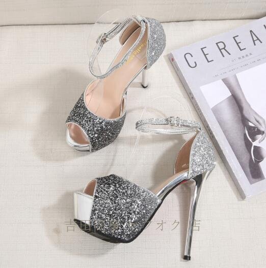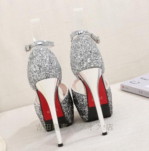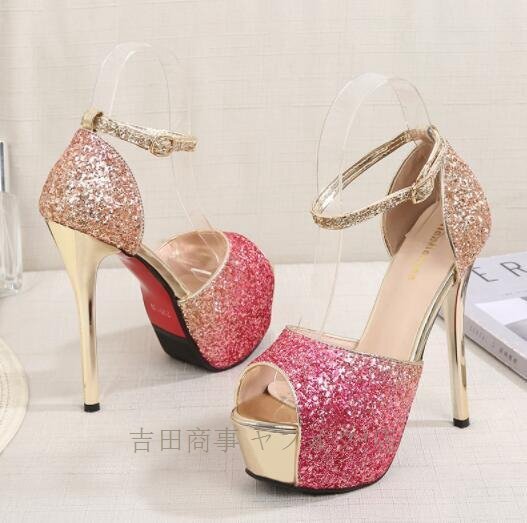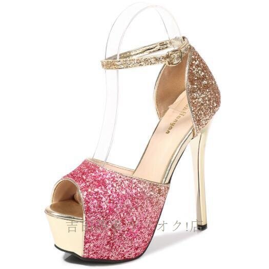 ☆新品ハイヒール オシャレ キャバ嬢 パーティー パンプス スパンコール ヒール高 サンダル キラキラ 結婚式披露宴ブラック24.5㎝