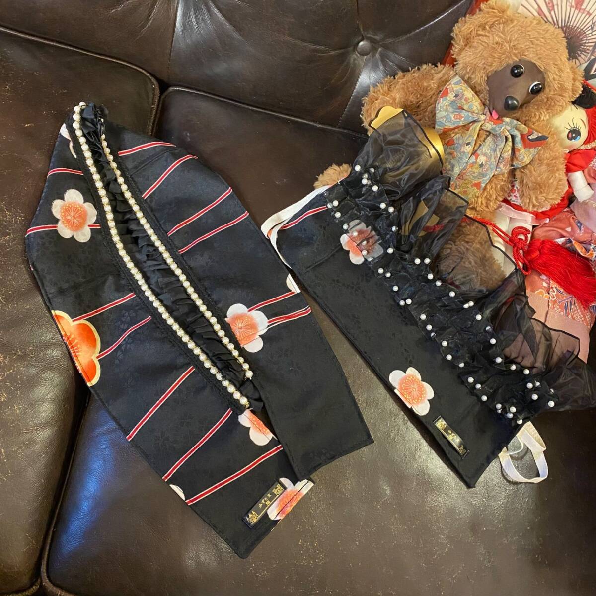 チャーム等、手縫いで縫い付けています。強い力を加えると破損しますので優しく取り扱い下さいませ。