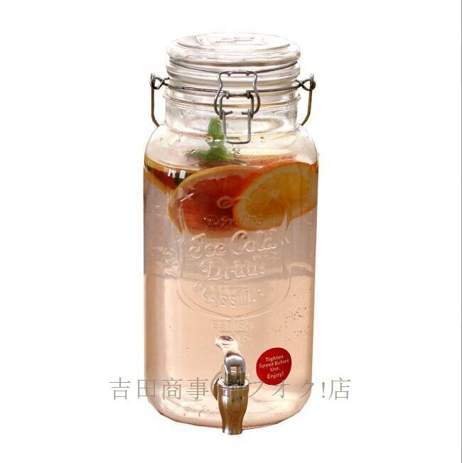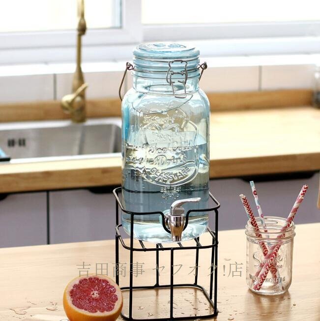 ☆新品ドリンクサーバー4L スタンド付 ガラス 蛇口付き 梅酒 ウォーターサーバー ガラス瓶 果実酒 ガラス製 瓶
