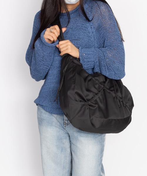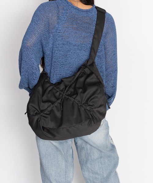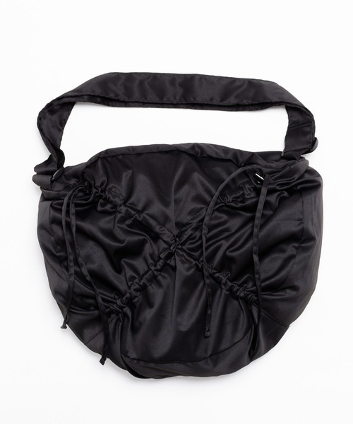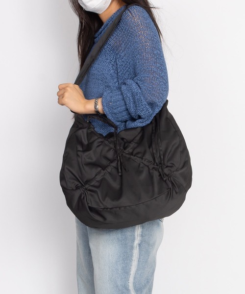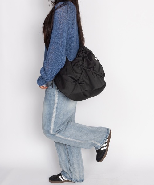 トレンドのくしゅくしゅしたシャーリングディティールがポイントのはっ水クロスシャーリングショルダーバッグ。