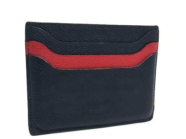 TODS トッズ レザー カードケース カード入れ パスケース 定期入れ メンズ レディース ネイビー系×レッド系 DJ4065