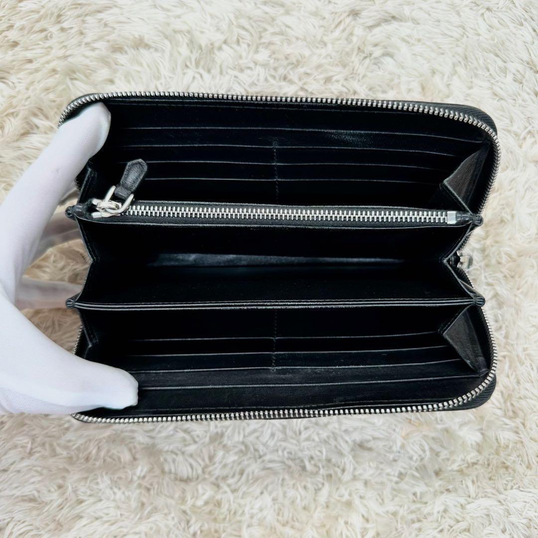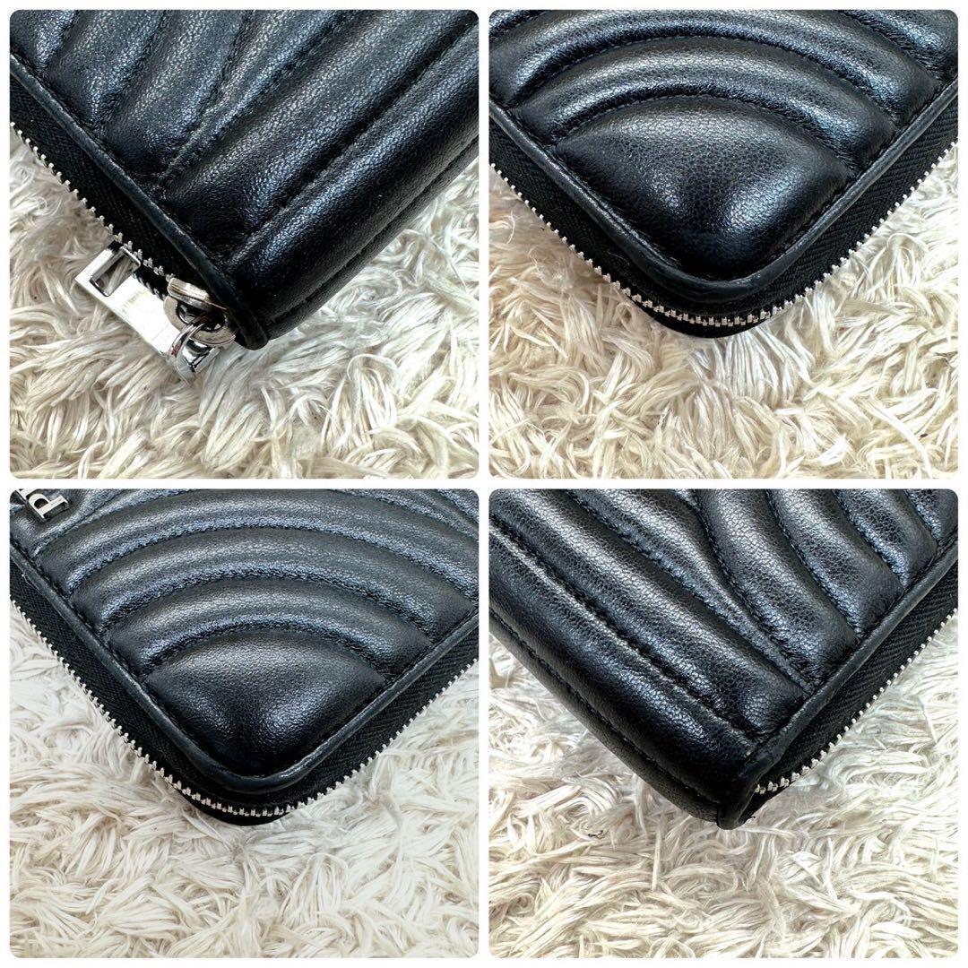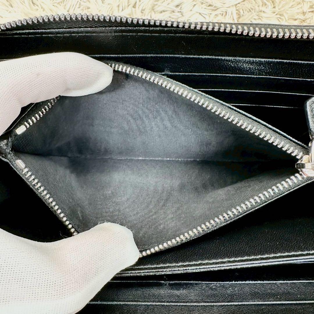 長財布 ウォレット ブラック 黒 ラウンドファスナー ダイアグラム キルティング レザー 本革 107 F サイフ シルバー金具 ロゴ金具