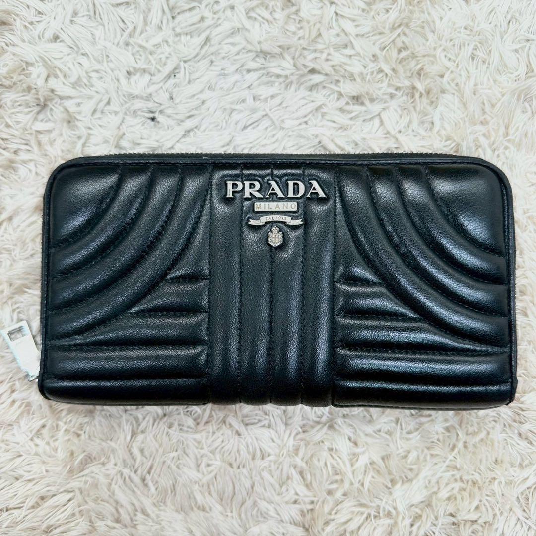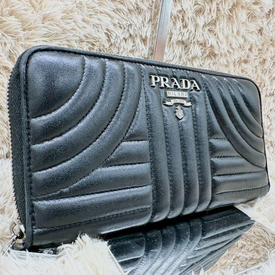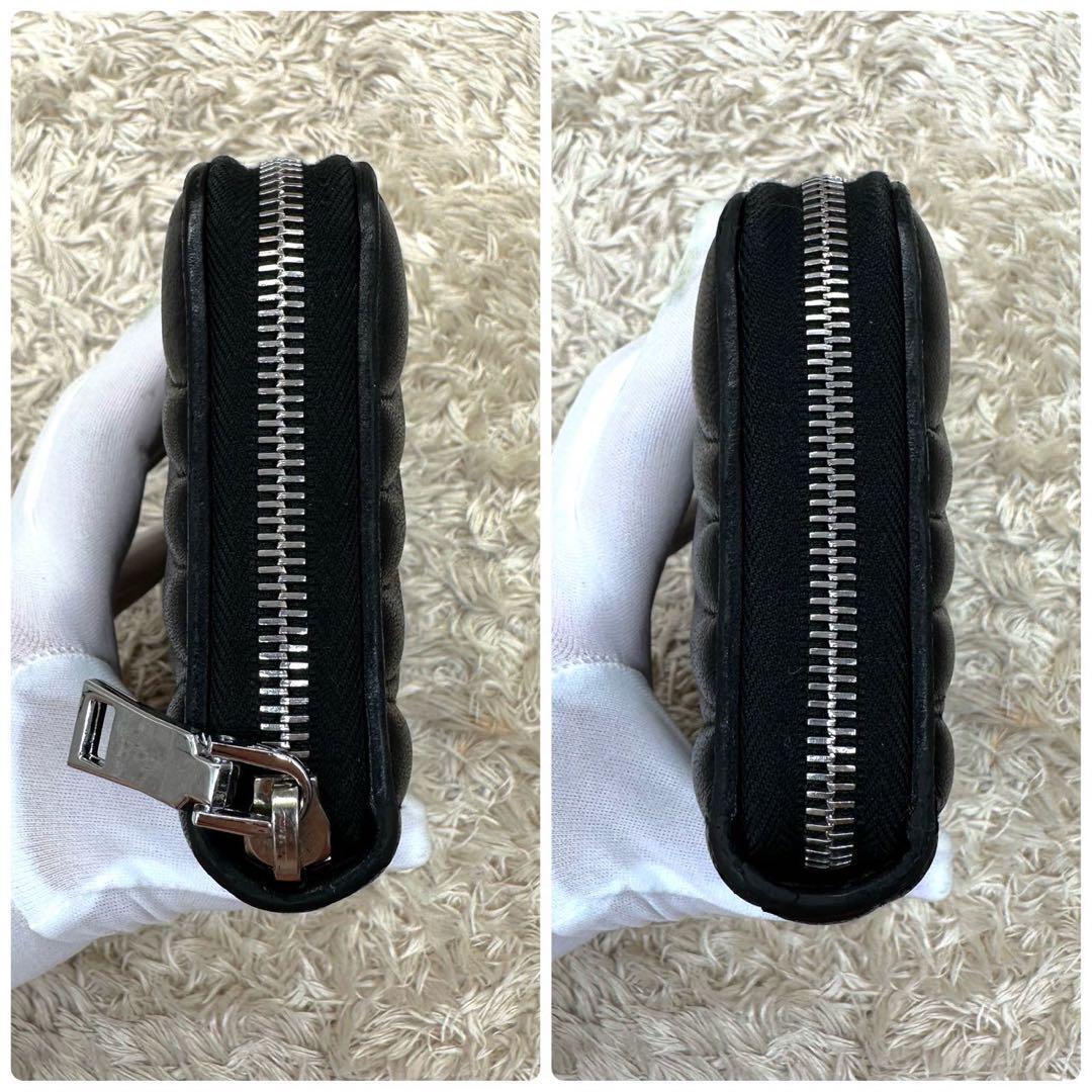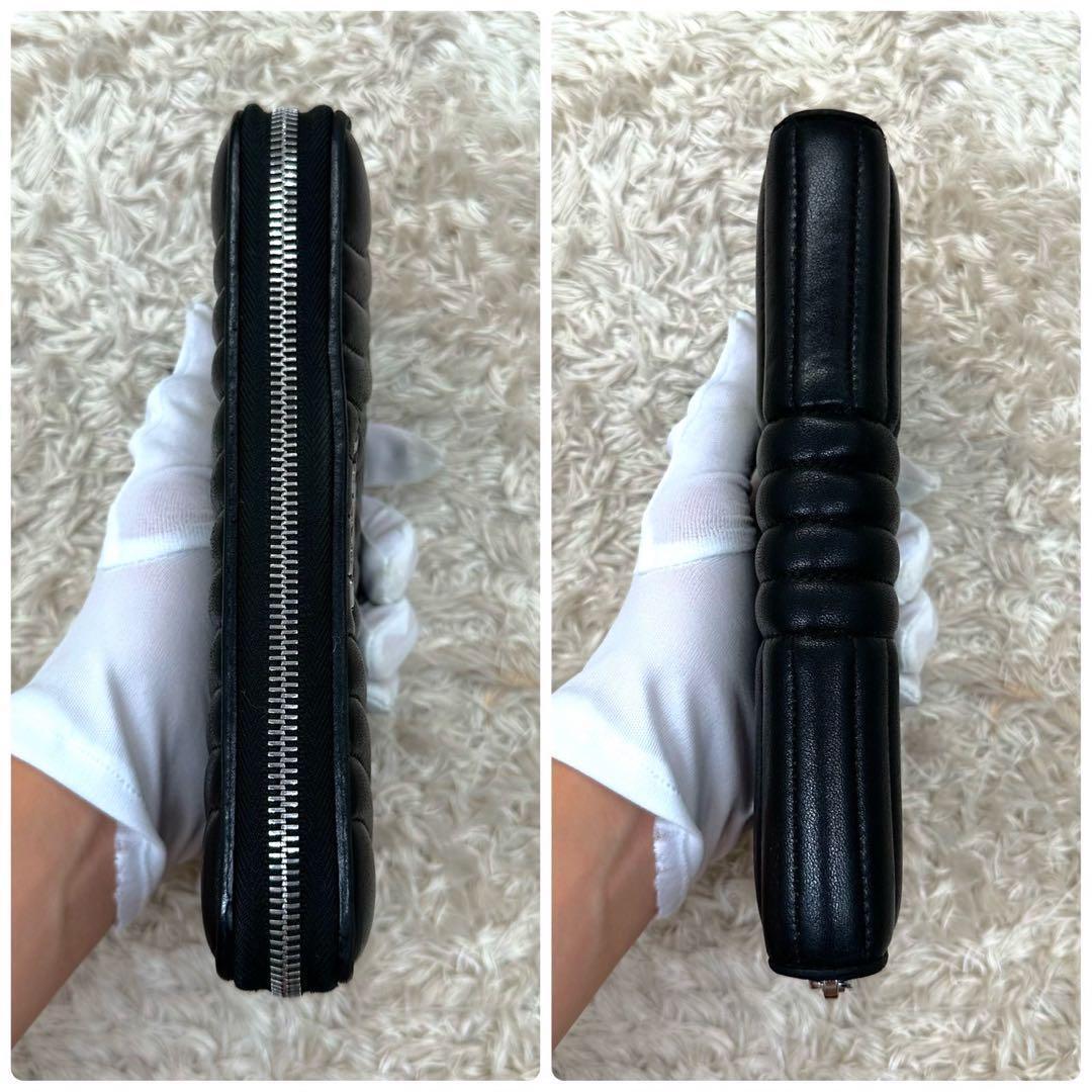 長財布 ウォレット ブラック 黒 ラウンドファスナー ダイアグラム キルティング レザー 本革 107 F サイフ シルバー金具 ロゴ金具