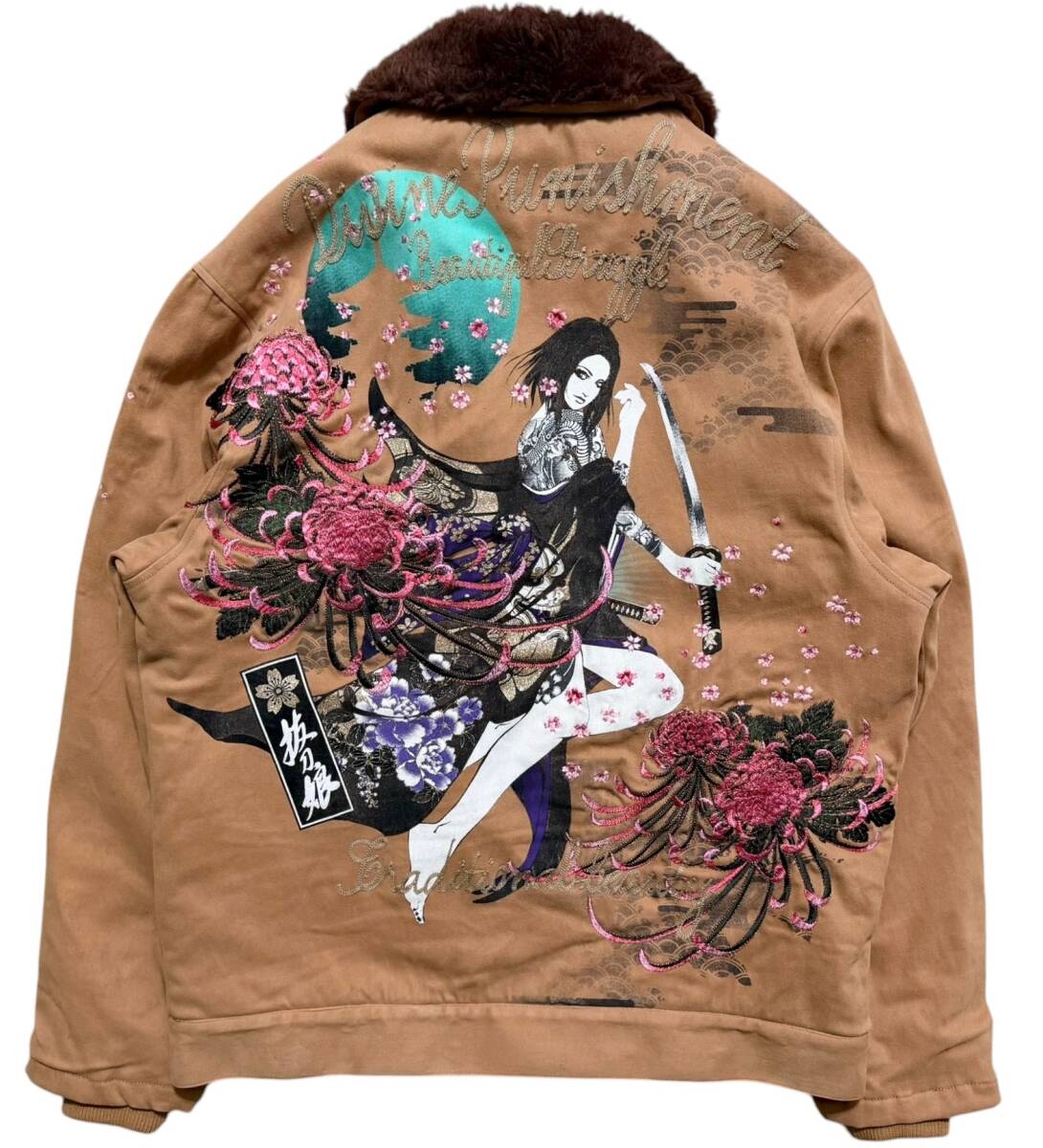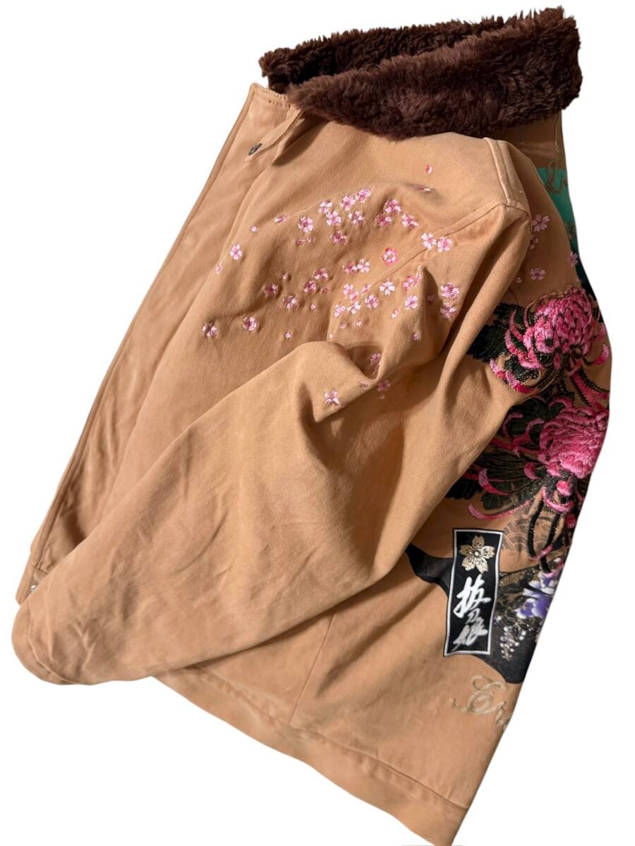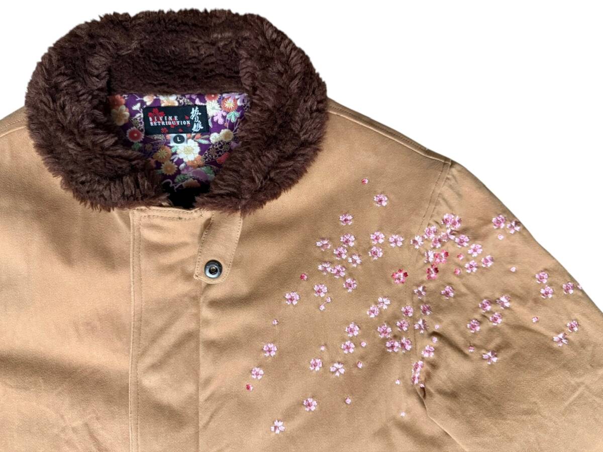 DIVINE RETRIBUTION 抜刀娘凛 裏ボア 和柄 ミリタリー N-1 デッキジャケット 裏ボアジャケットL ベージュ 絡繰魂