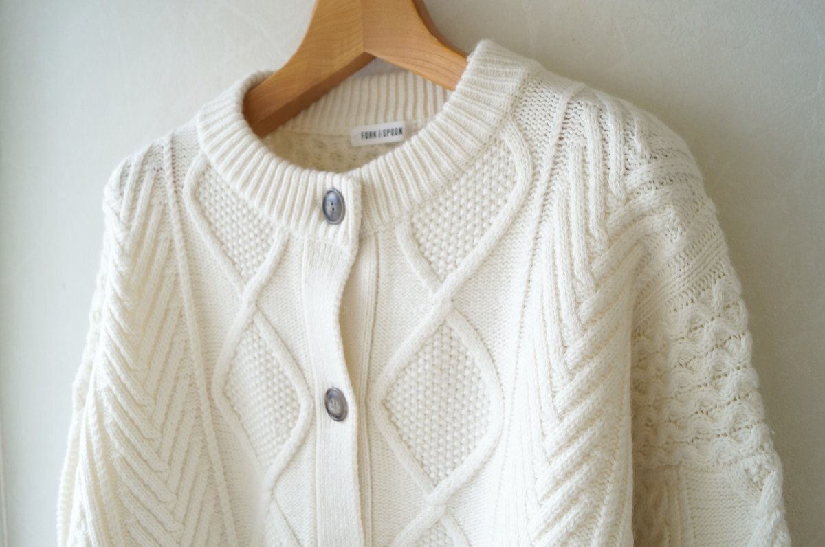title: ★アーバンリサーチ FORK&SPOON *ざっくり 柄編み ニットカーディガン /オフホワイト* 古着のgplus広島 2509t5
