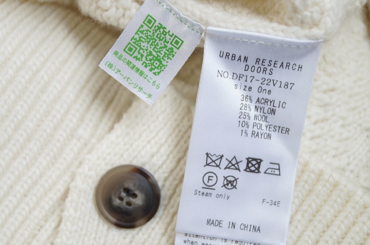 ★アーバンリサーチ ドアーズ FORK&SPOON *秋冬ざっくり 柄編み ニットカーディガン /オフホワイト* 古着のgplus広島 2509t5