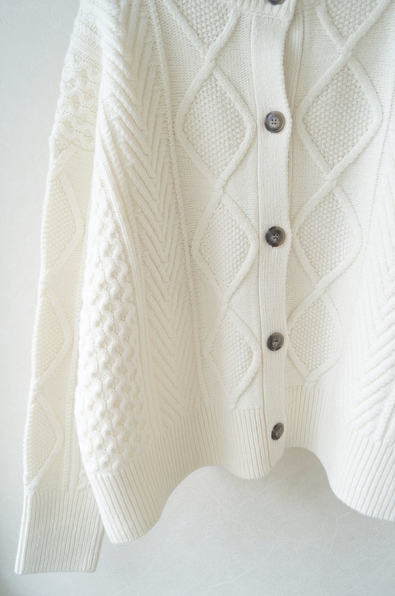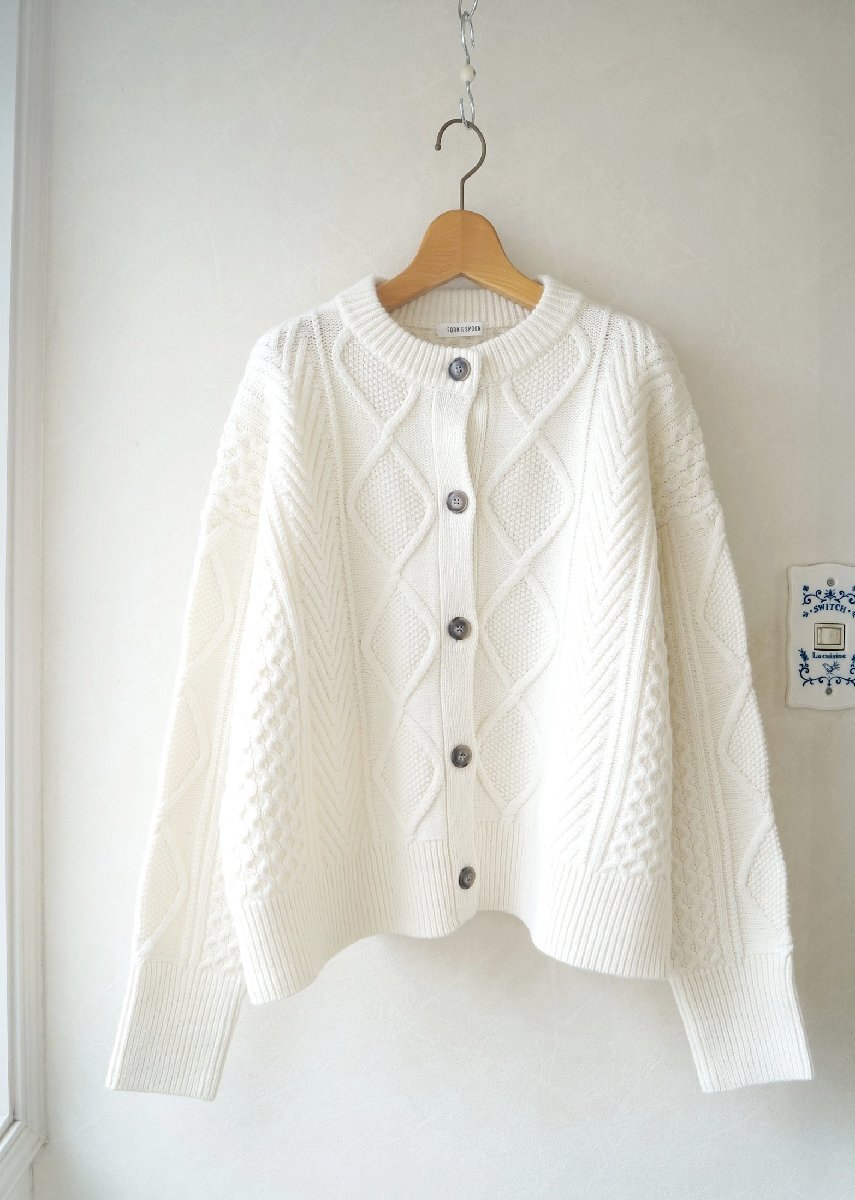 ざっくりとした風合いと編地に変化をつけた柄模様が素敵なカーディガンです。