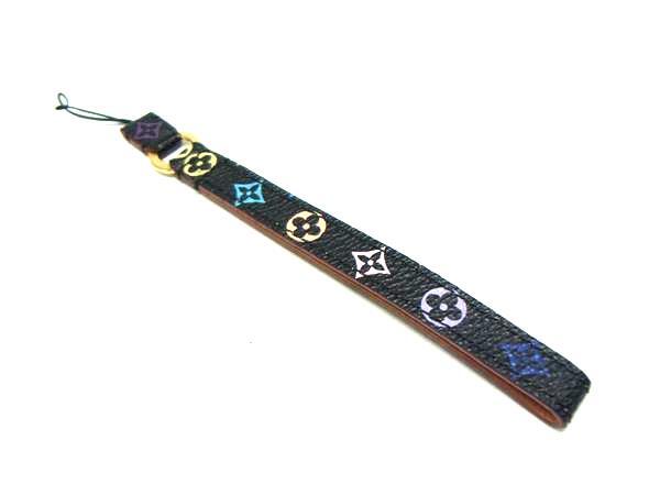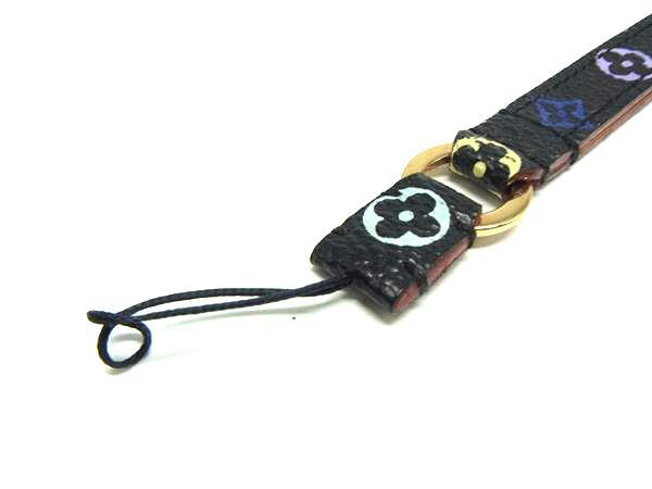 ■美品■ LOUIS VUITTON ルイヴィトン M92598 モノグラムマルチカラー ドラゴンヌ テレフォン ストラップ ブラック系 DJ1836