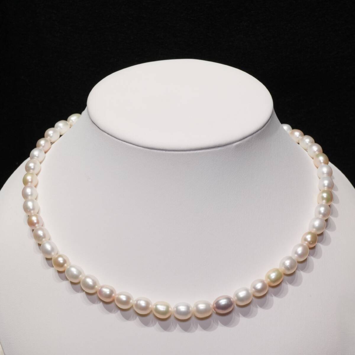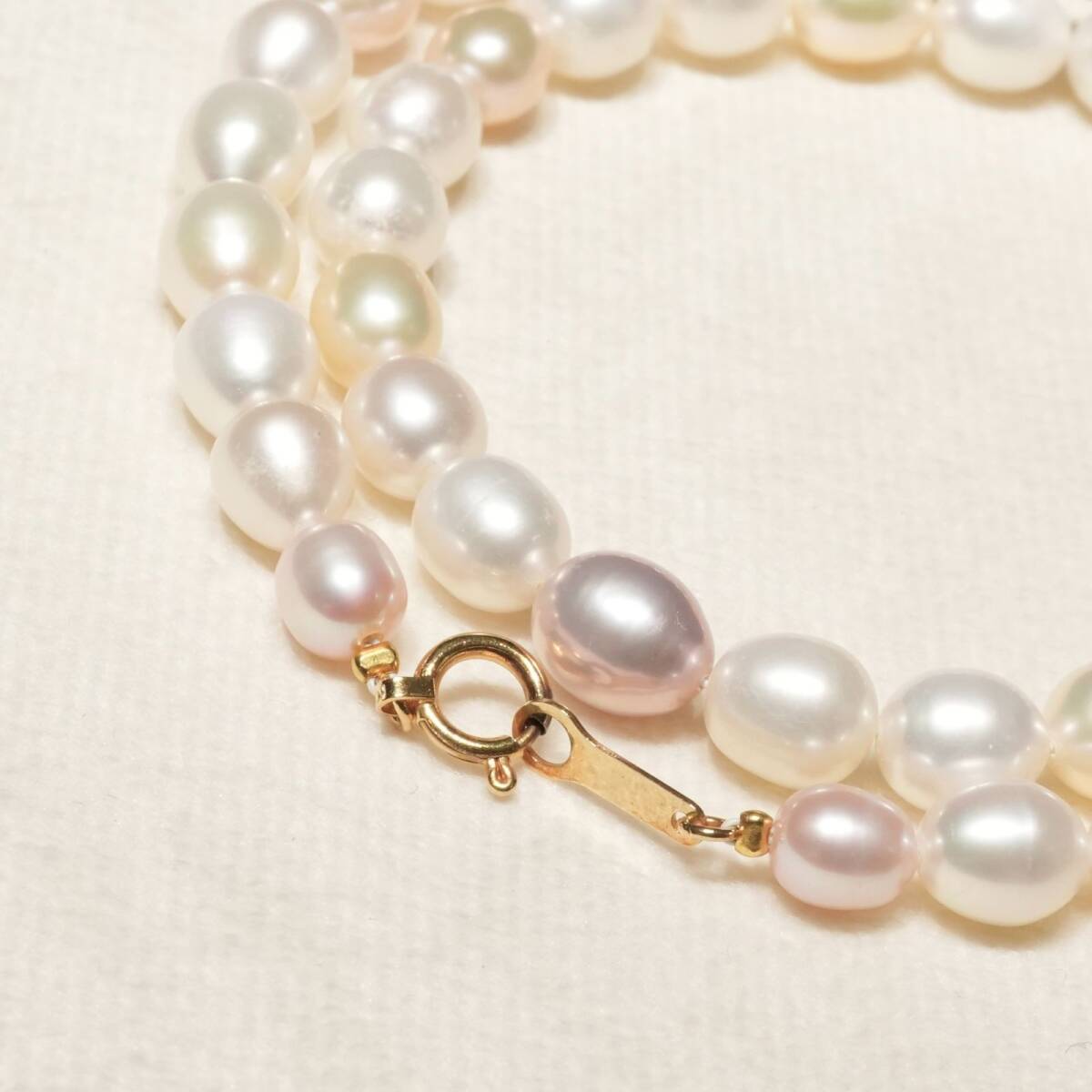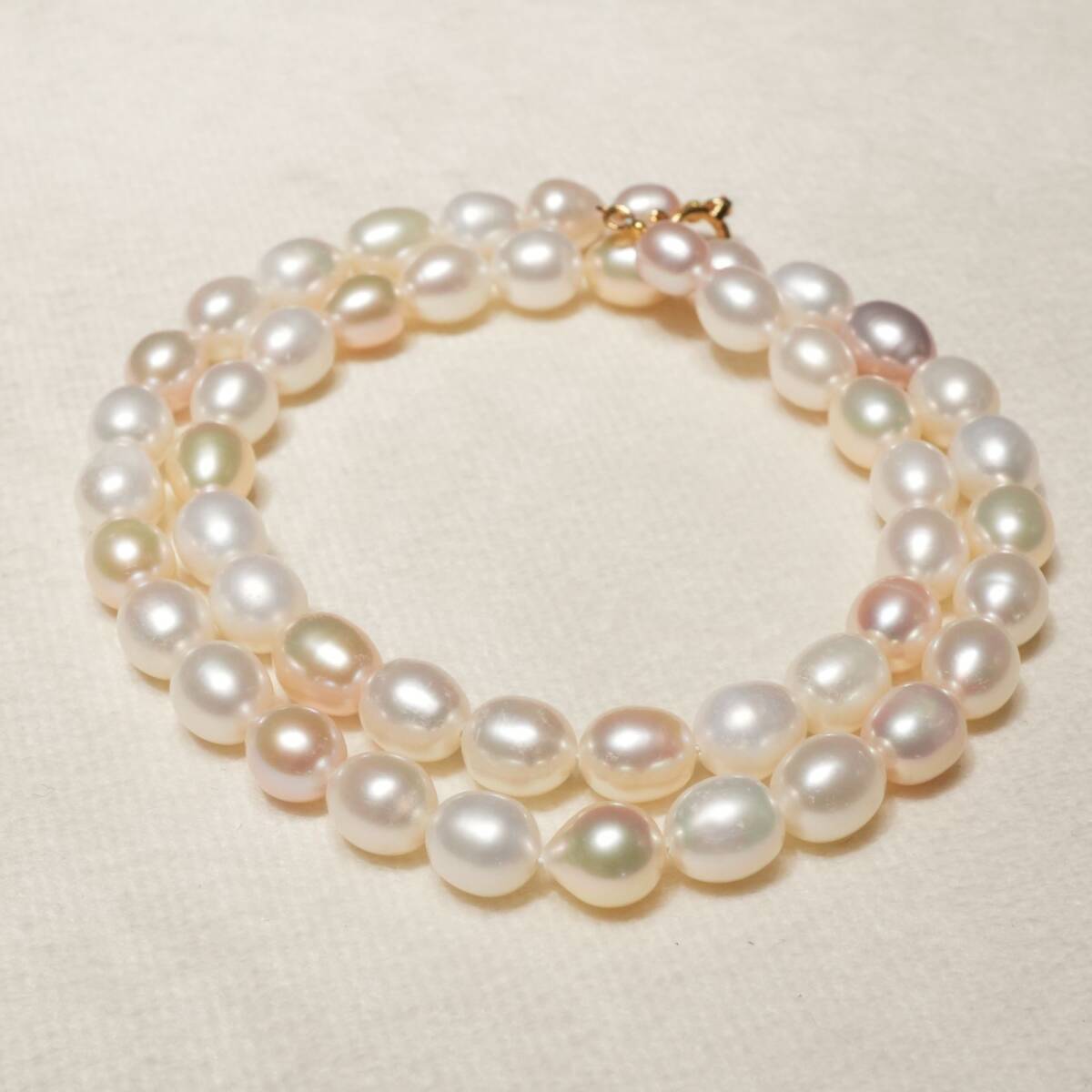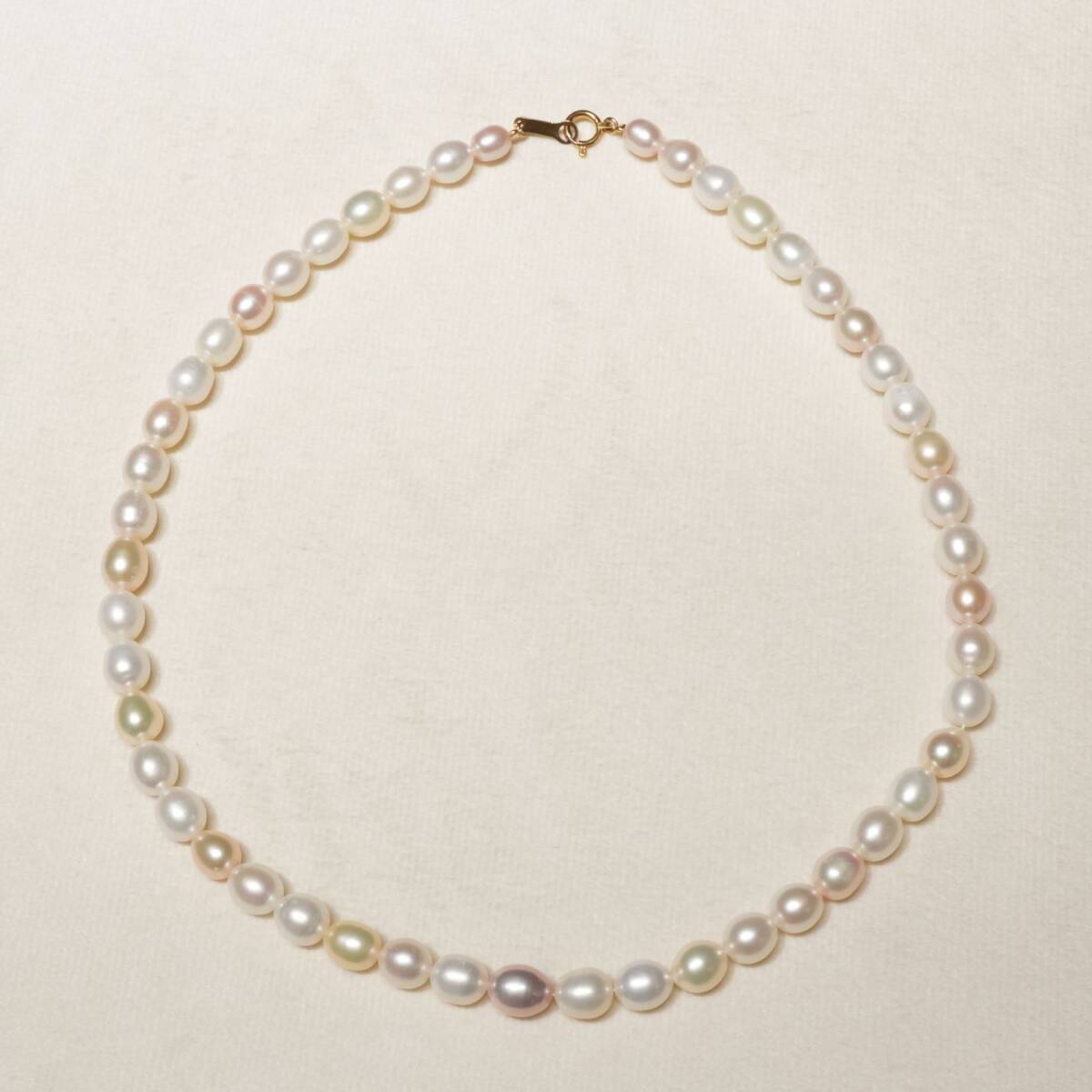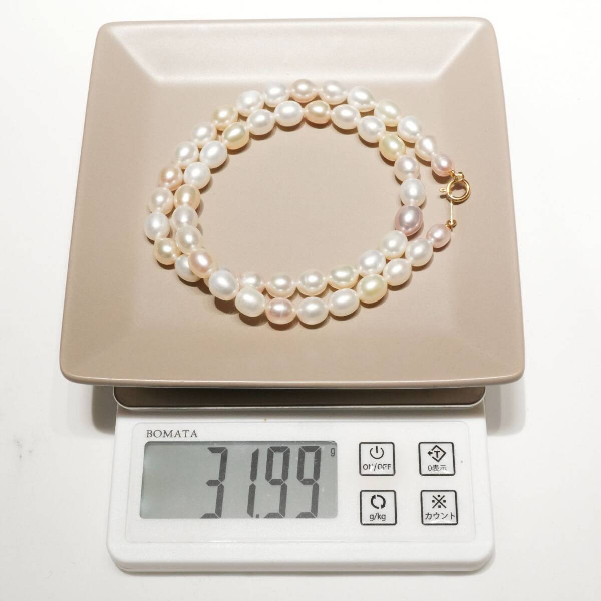 K18 淡水パール ネックレス オーバル 真珠/25-260M