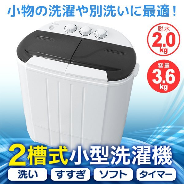 コンパクトだから場所も取らずにちょこっと洗いで節水もできます。 少量の洗濯物や洗い分けに最適! 二槽式だからしっかり洗えてしっかり脱水可能! ★こんな場合にオススメ!★ ・ガーデニングや作業で汚れた軍手やエプロンの洗濯 ・学校や部活動で汚れたシューズや服の下洗い ・ベビー用衣類の洗濯 ・海水浴後の水着の洗濯 ・別洗い用のサブ機として 【商品内容】 本体 脱水用おさえさえフタ 吸水ホース 【商品詳細】 カラー:ブラック サイズ:(約)幅550×奥行360×高さ590mm 重量:(約)9000g 洗濯容量:3.6kg 電源:AC100V 50/60Hz 定格電力:洗濯:240W 脱水:120W 防水性能:IPX4 ・本製品の脱水は、簡易脱水となっております。あらかじめご了承ください。 ・水がこぼれても大丈夫な風呂場やベランダなどでのご使用をオススメします。 ・分解や修理・改造をしないでください。 ・保管する時は、風雨にさらされる場所や湿気の多い場所に置かないでください。 |