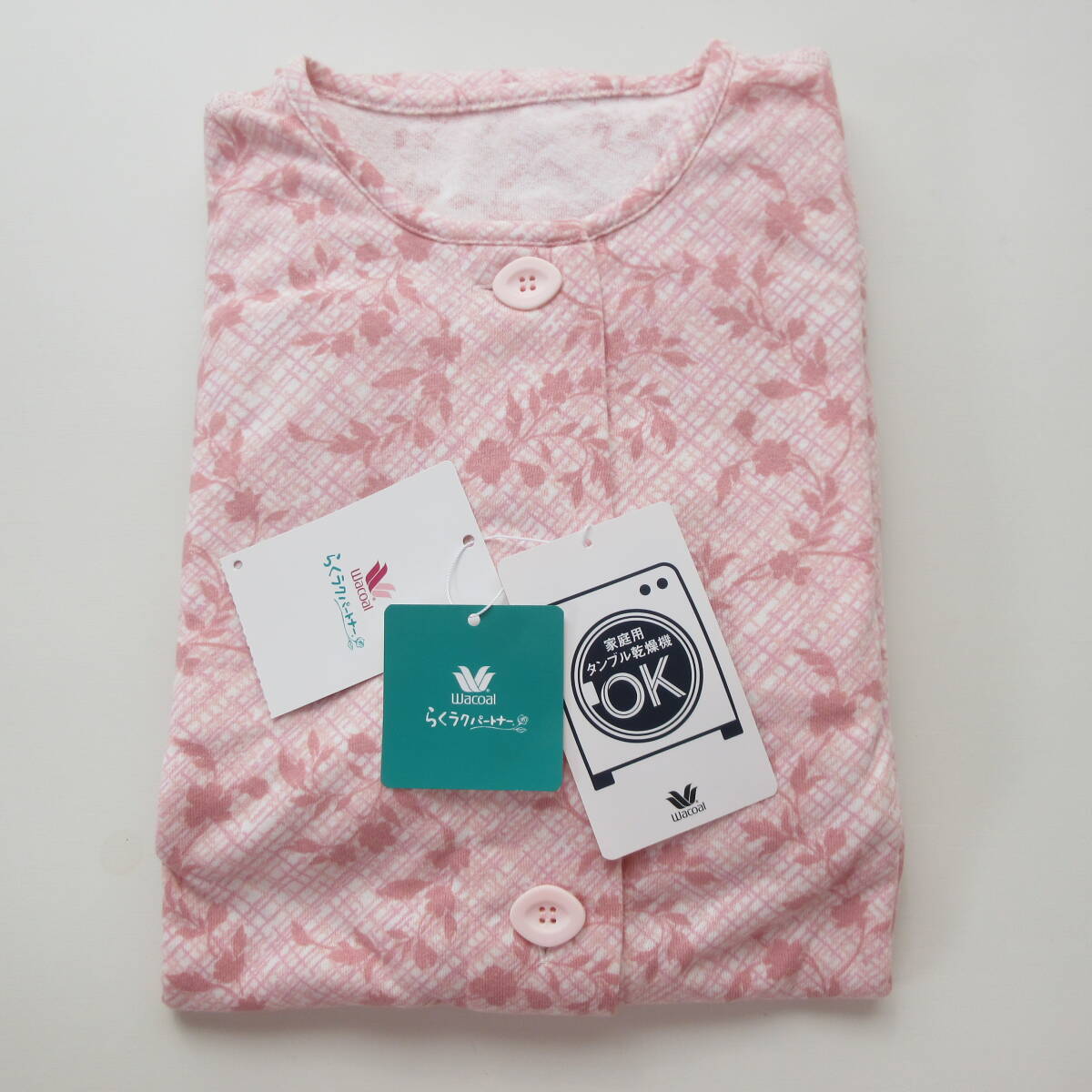 ワコール らくラクパートナー "なるほど着やすい らくラク親切設計" 着ごこちを考えたパジャマ 定価 14300円 新品タグ付き サイズ MP 型番 DNL341 ●家庭用タンブル乾燥機対応しております。 肌側パイル素材で ここちよい肌触りです。 ボタンホールに出し入れしやすいように工夫した、大きめのエッグボタン。 くぼみが付いてつまみやすいので、留めはずしがラク。 やさしいイメージのチェックと花柄プリントです。 この他にもいろいろ出品しています。 | |||