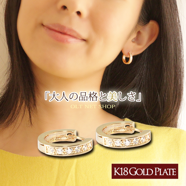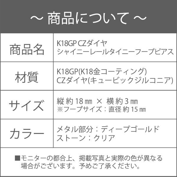 フープ ピアス レディース ディープゴールド 18金 18kコーティング シンプル リング/K18GP CZダイヤ シャイニーレールタイニーフープピアス