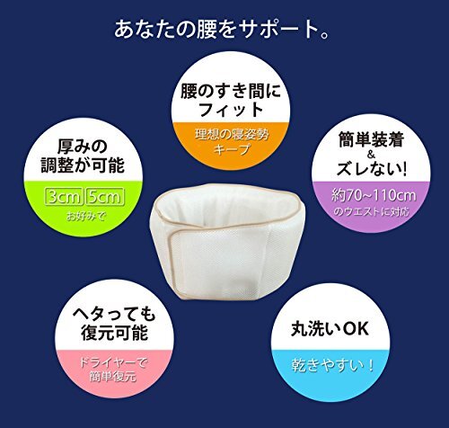 | 商品説明 | サイズ:(約)縦17×長さ116×厚さ3cm(中材で調整) ●腰に巻くだけ! 窪みにフィットし、寝姿勢を楽にしてくれる腰枕●腰の隙間を埋め、しっかり支えることで、部分的に掛かっていた体重をバランスよく分散●中材には、程よい反発性を持つ特殊立体構造編物「エアーラッセル22」を使用●寝返りがスムーズになり、朝起きた時の体の軽さが違う! ●側生地はソフトな触り心地のハニカムメッシュ素材で、通気性が良くムレにくい●大きな面テープ式なので、装着と調節はとても簡単! 70~110cmのウエストに対応●厚みの調節ができるシート付き、お好みで3cmまたは5cmが選べる●置き型ではなく腰巻きタイプなので、寝相が悪い方でもフィット感をキープできる●ご家庭で洗えるので、いつでも清潔●品質の良い日本製 ■ご注文からお届けまで ※トラブル防止のため入札、落札前に必ずご一読をお願い致します。 落札後のお客様都合でのキャンセルはお受けできませんので、予めご了承ください。 1.ご注文 : ご注文は24時間受け付けております。 2.注文確認 : ご注文時、オーダーフォーム等必要事項を入力お願い致します。 3.入金確認 : 前払い決済をご選択の場合、ご入金確認後、配送手配を致します。 4.出荷 : 配送準備が整い次第、出荷致します。配送業者、追跡番号等の詳細をご連絡致します。 5.到着 : 出荷後、1-3日で商品が到着します。 ※商品の到着までは、決済確認後、3-7営業日でお届けとなります。 ※離島、北海道、九州、沖縄は遅れる場合がございます。ご了承下さい。 ※代引の場合、手数料として660円頂きます。 商品管理、在庫管理は行っておりますが、商品の不具合等でお届け出来ない場合は、 銀行口座へ振込返金となりますので、予めご了承いただきますようお願い申し上げます。 手続き削減の為、こちらからは発送完了までご連絡を行なっておりません。 原則、電話対応はしておりませんので、ご質問等はお問い合わせ、またはメールにてお願い致します。 土日祝祭日はご質問や落札されても商品発送等の、対応ができない日もございます。 予めご了承ください。 |