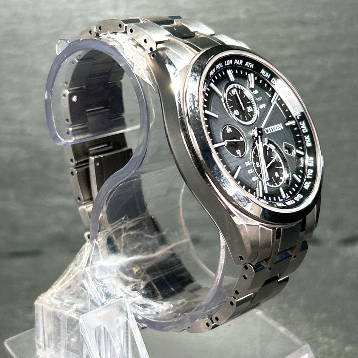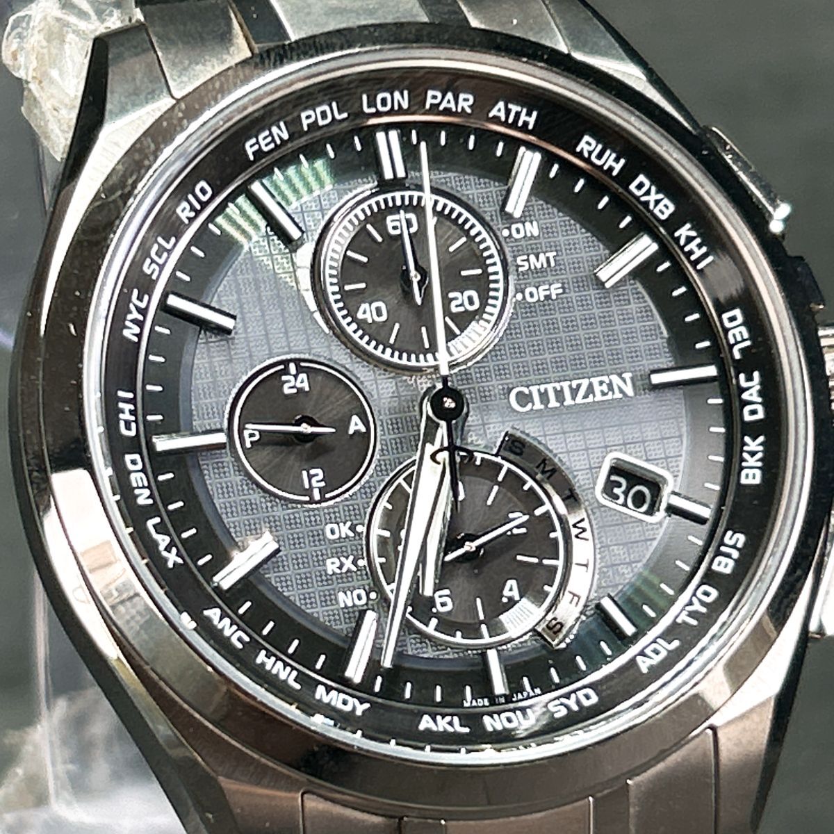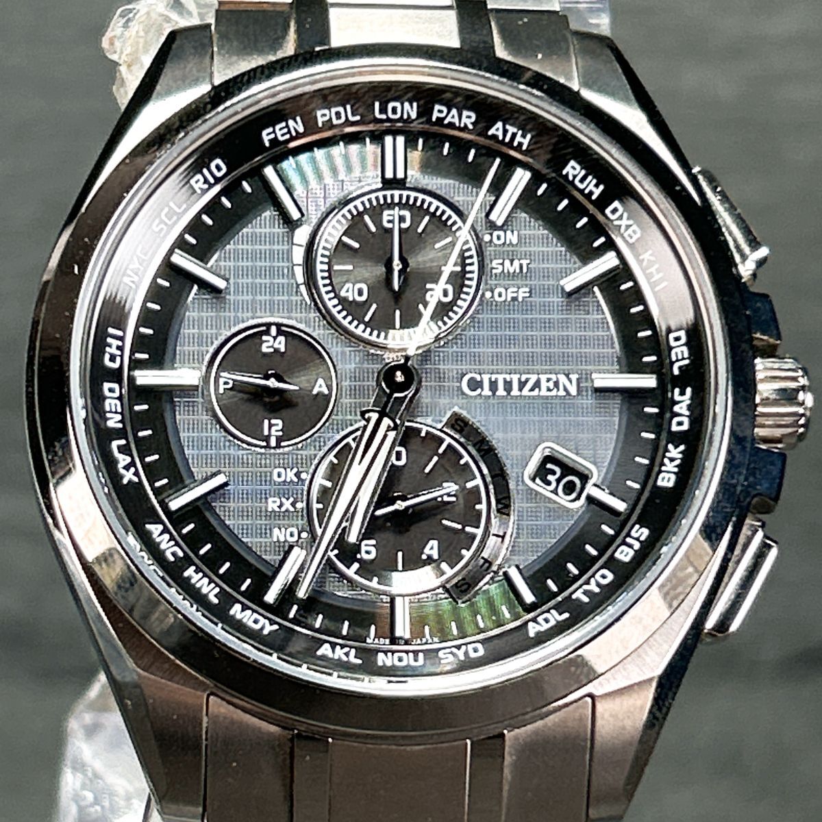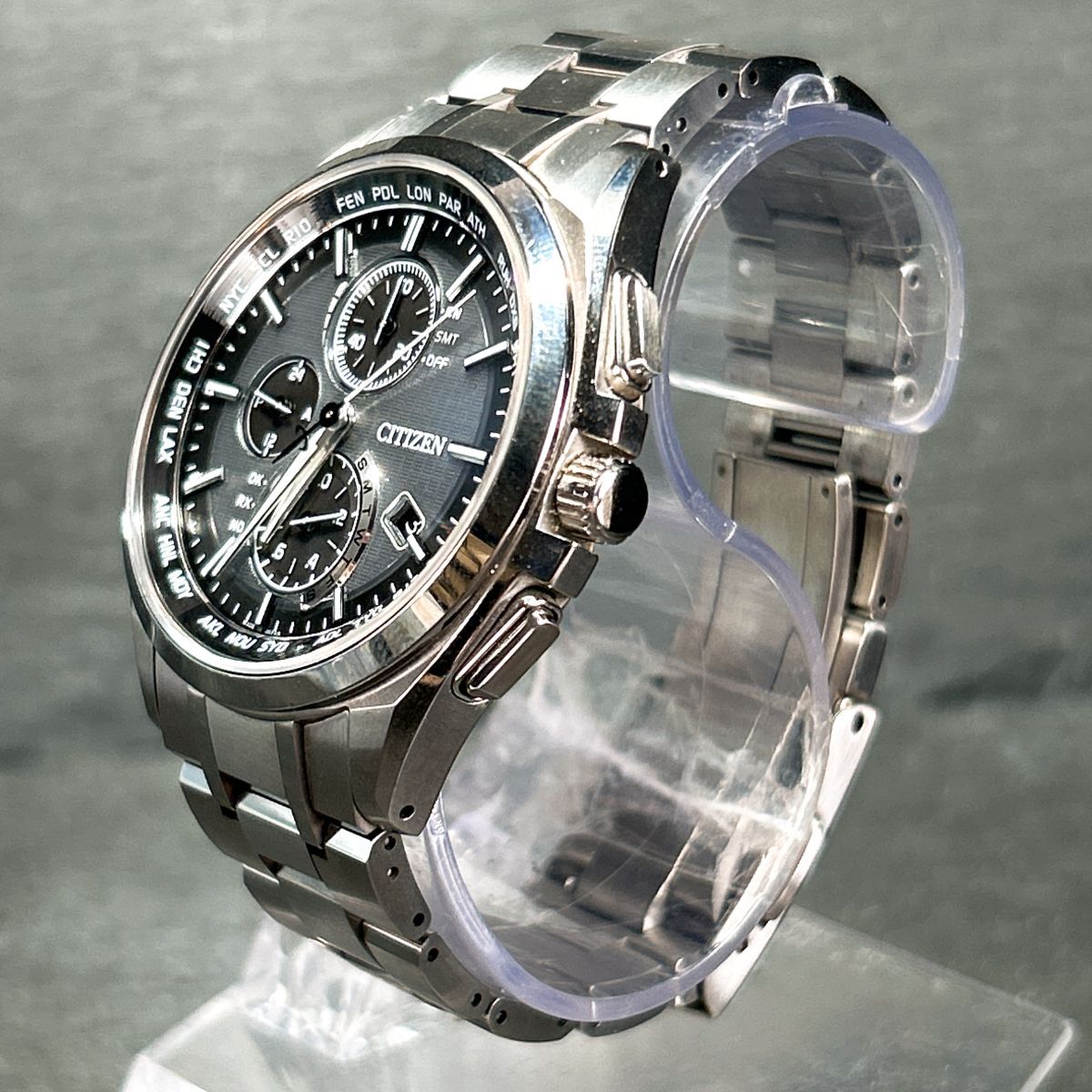 仕様 | 10気圧防水 月差±15秒(非受信時) 光発電エコ・ドライブ パワーセーブ機能 フル充電時約10ヶ月可動(パワーセーブ作動時) 電波受信機能(日中米欧電波受信) ワールドタイム機能(26都市) ダイレクトフライト(針表示式) パーフェックスマルチ3000 クロノグラフ(20秒、60分計) パーペチュアルカレンダー JIS1種耐磁 |