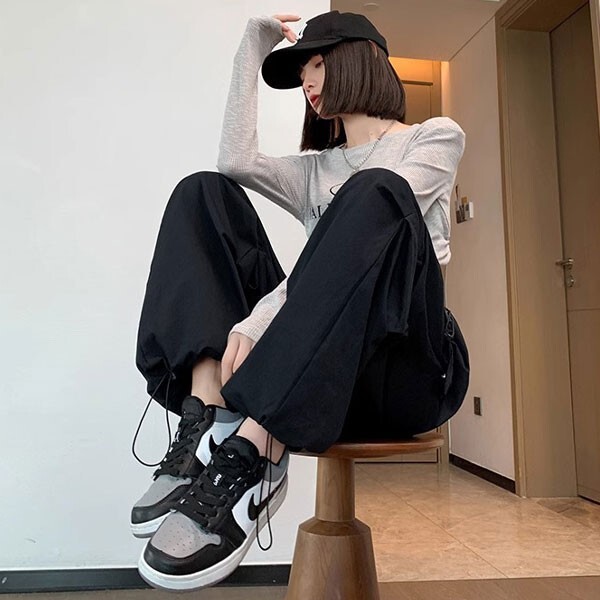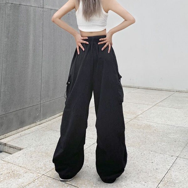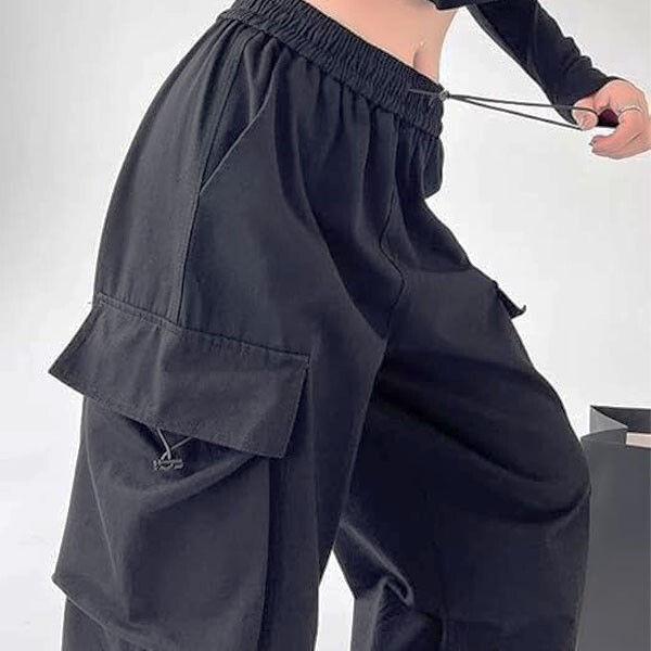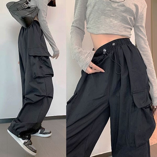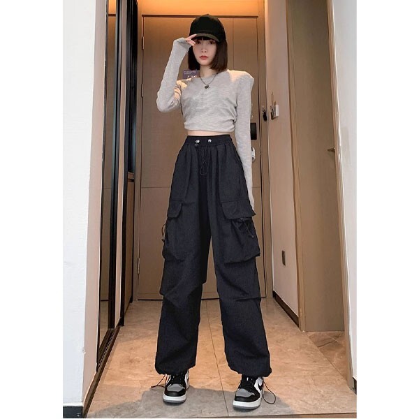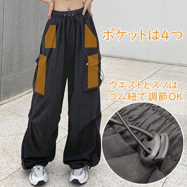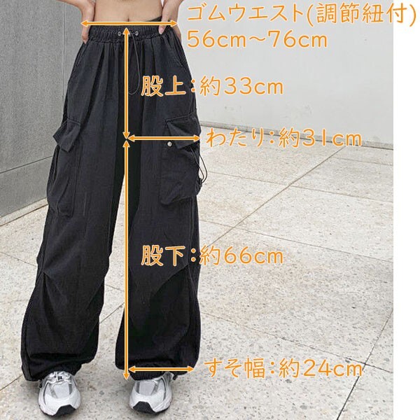 | 商品説明 | フリーサイズ商品です 黒 無地のレディース カーゴパンツ ワークパンツ ワイドパンツ感のおかげで体型カバーもOK パラシュートパンツとしても人気 ストリート系 ヒップホップ系 と相性が良く ダンス衣装としてもオススメです ゴムウエストと紐調節で誰でも履きやすくなっております 足首にも紐調節があります サイズ ウエスト:56~76cm 股上:約33cm 股下:約66cm わたり:約31cm すそ幅:約24cm
