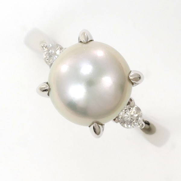 PT900 リング 指輪 8.5号 パール(真珠) 約8mm ダイヤ 0.12 総重量約4.4g 中古 美品 送料無料 | |