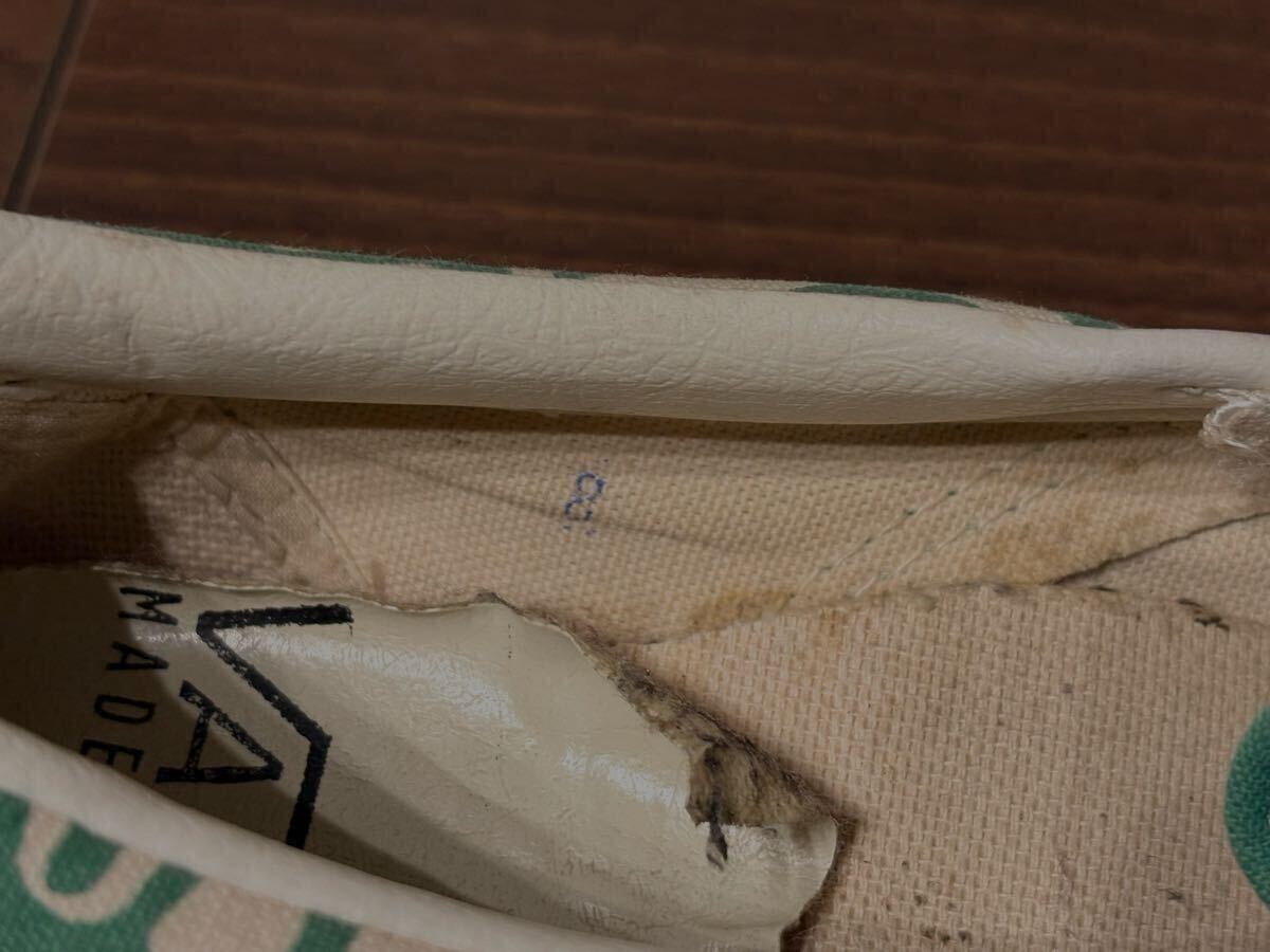 使用感の無いデッドストックコンディションです。長期保管によるヨゴレ、シミ、インソールのレザーパッチ剥がれなどがございます。ソールの硬化は無く弾力性を維持しております。40年以上前の衣料ですのでビンテージに理解がある方のみご検討宜しくお願いします。