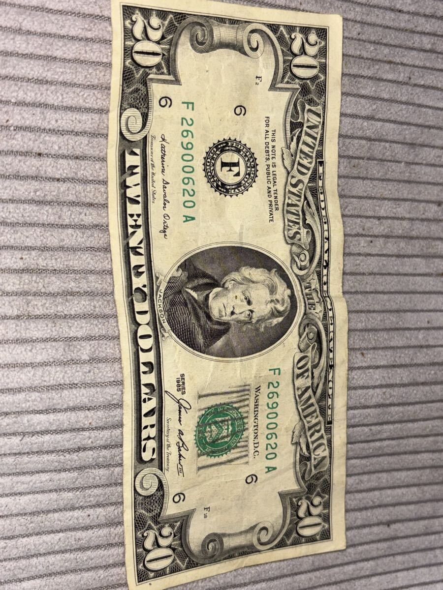 アメリカドル 20ドル札 1985年 1枚目の写真がお送りする全てで、あとは確認用の写真です。 傷や汚れなど写真でご判断頂きましてご理解頂ける方でご購入をお願い致します。 クリアファイルに挟んで、防水の上発送します。 即購入可能です。