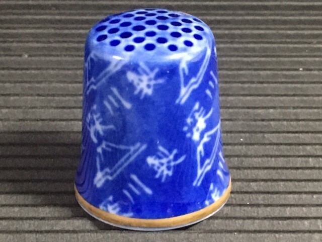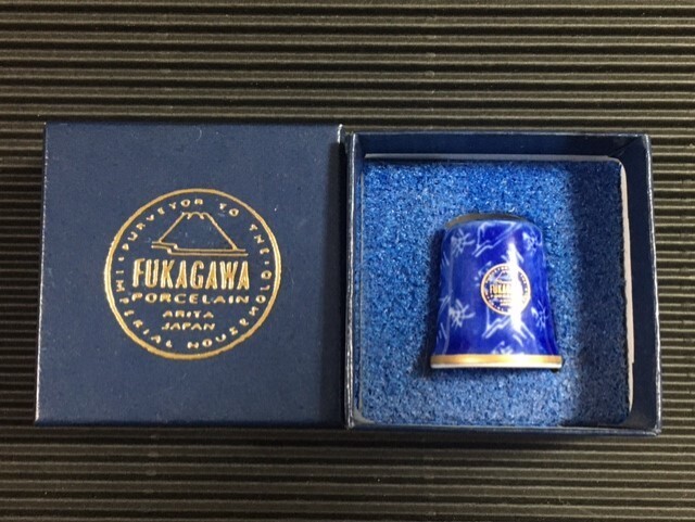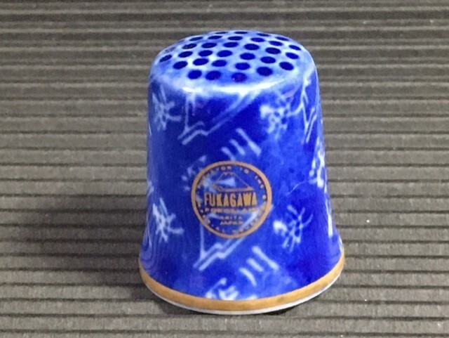 ★深川製磁 染付指貫 シンブル 「深川窯印」 箱付★e27希少