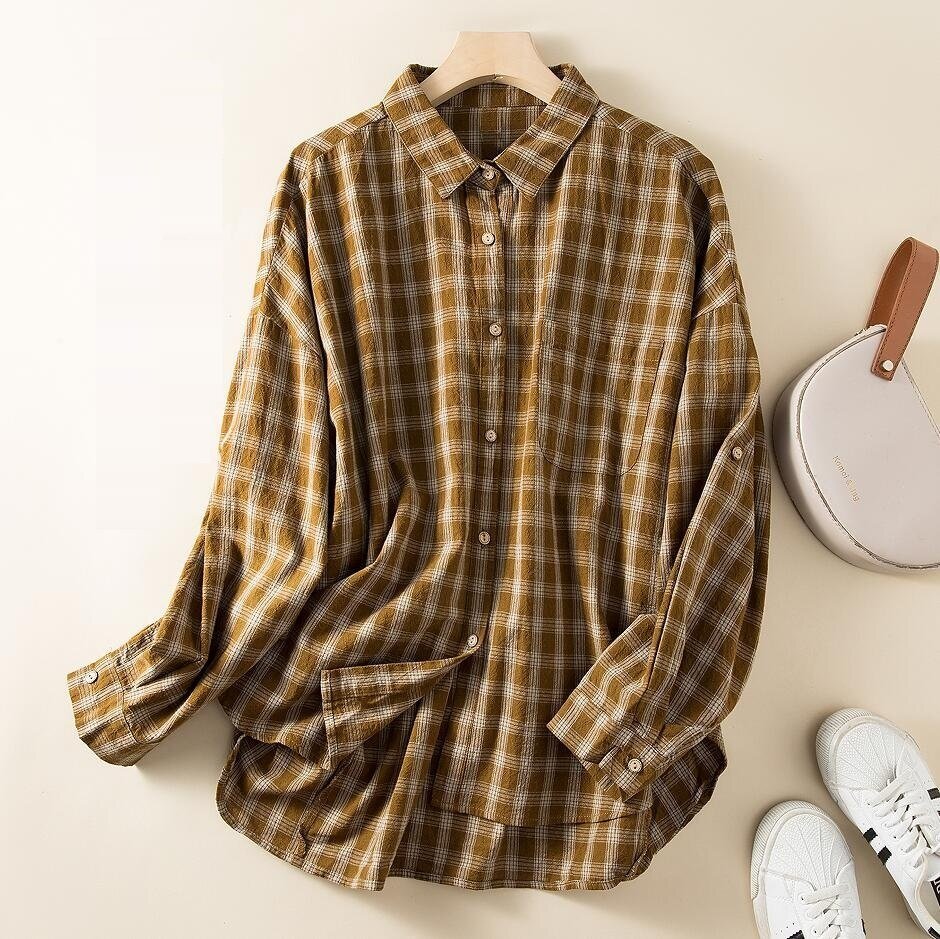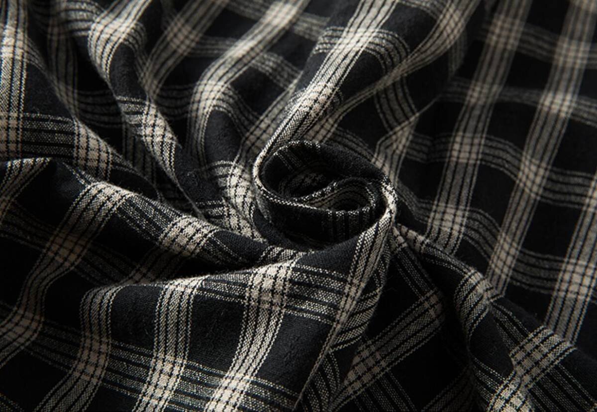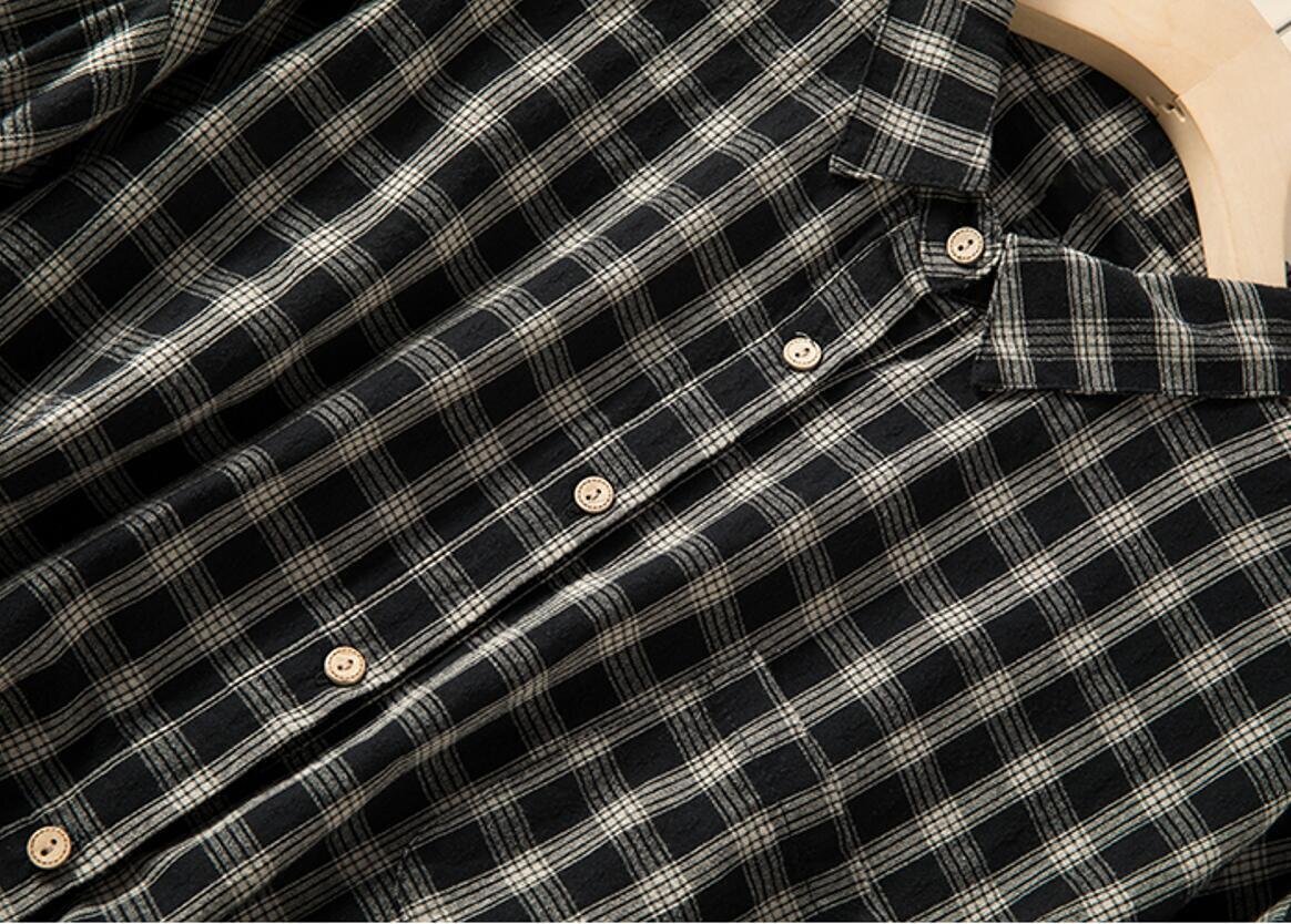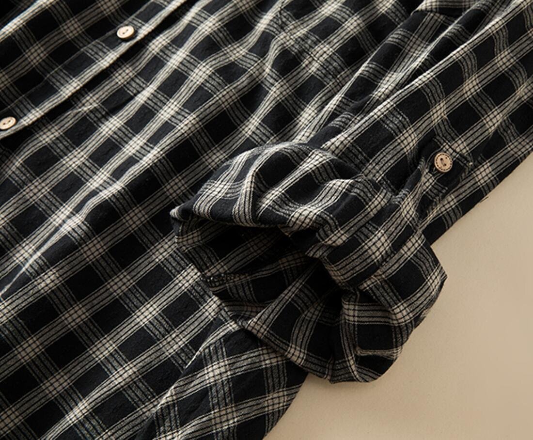 秋新品 ブラウスシャツ レディース チェック柄 綿麻 リネン 長袖 トップス ゆったり 大きいサイズ ★ 黒/Lサイズ