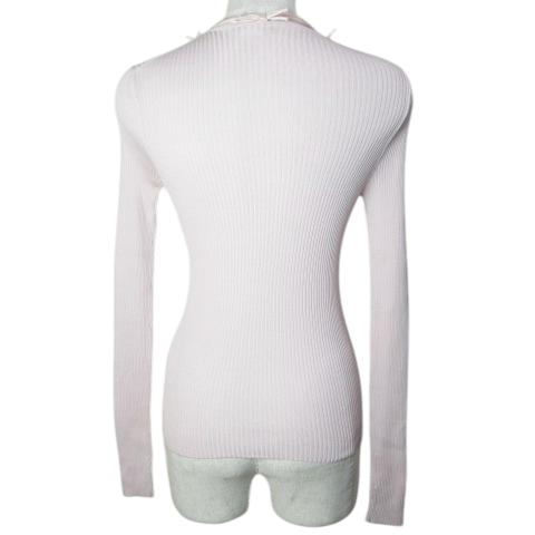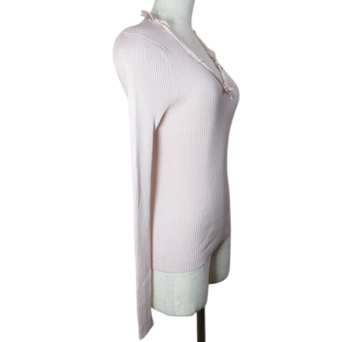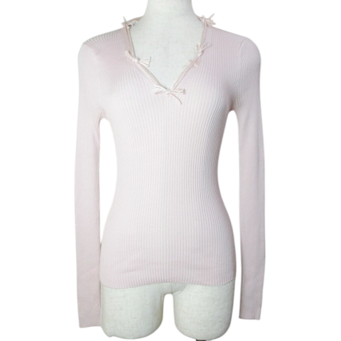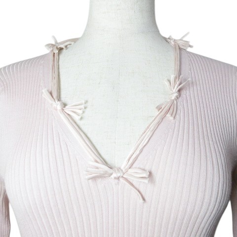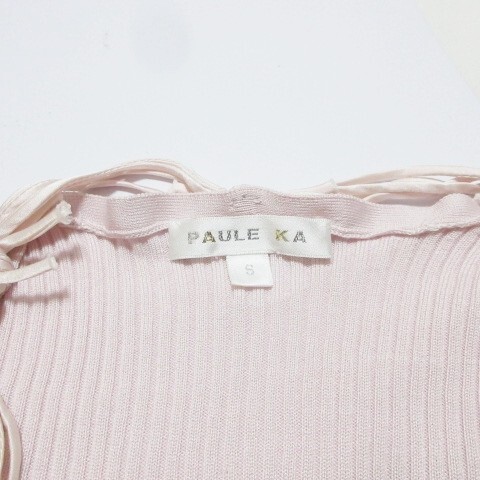 ポールカ PAULE KA シルク ニット リボン プルオーバー カットソー Vネック 薄手 S ピンク /X レディース