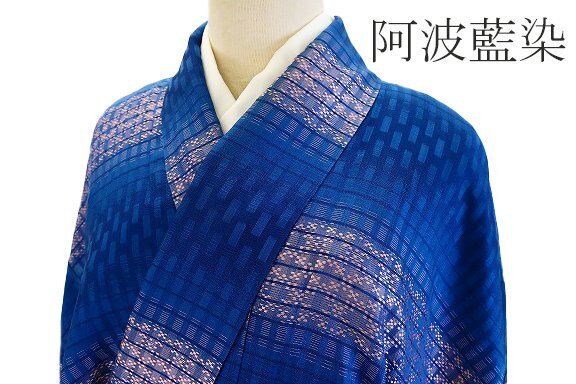 【送料無料】逸品 未使用品 阿波藍 藍染 小紋 青 格子 佐藤昭人 証紙付き 身丈157cm 裄丈65cm 袷 仕立て上がり 正絹 着物フィ m-8323 |