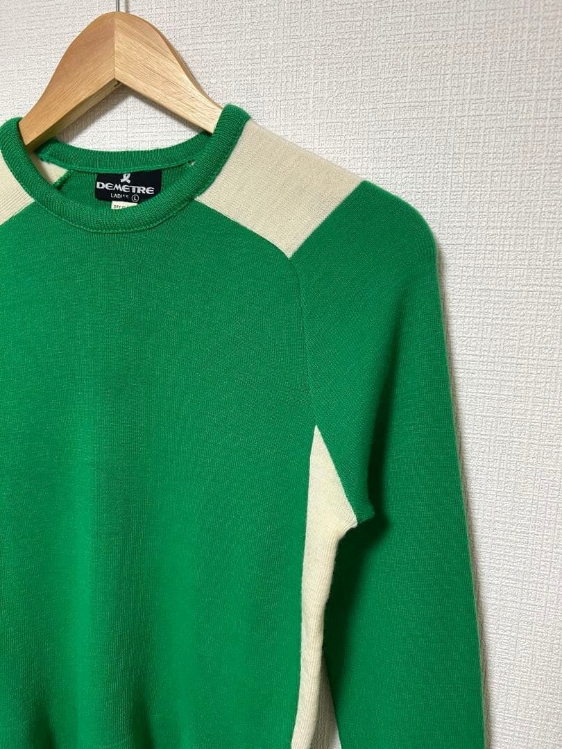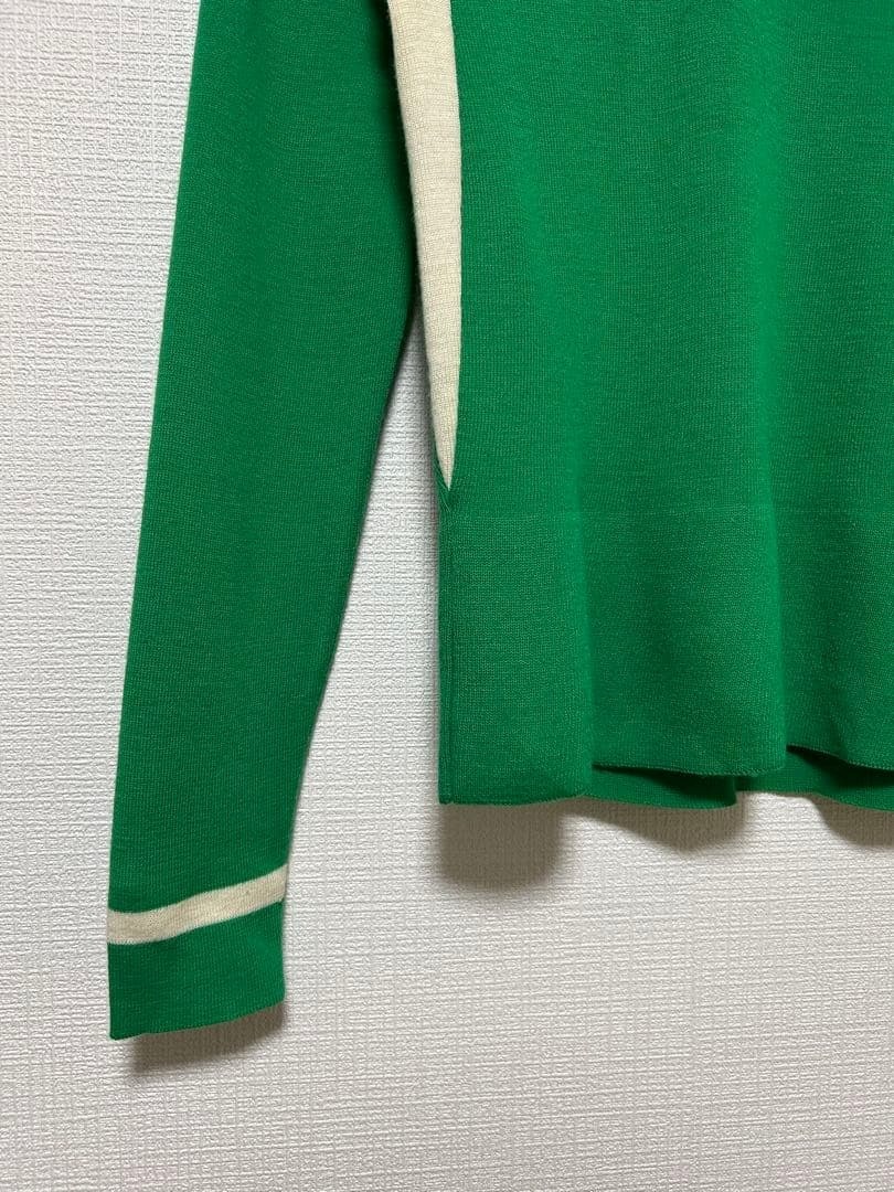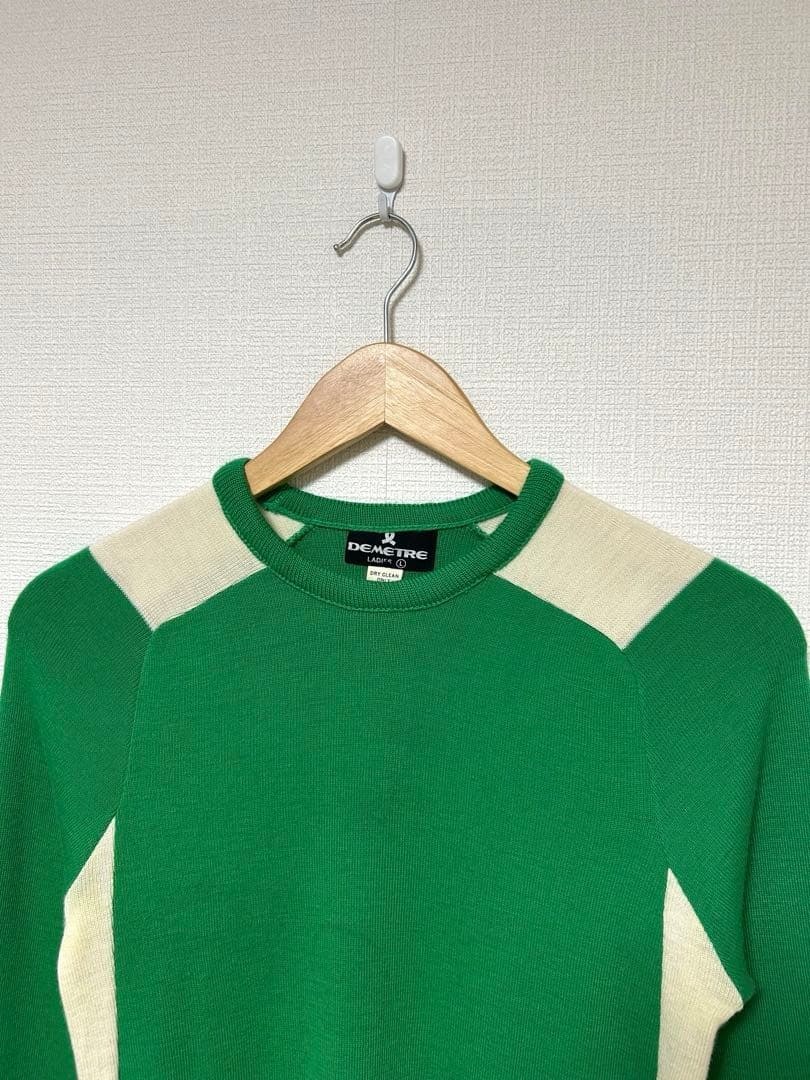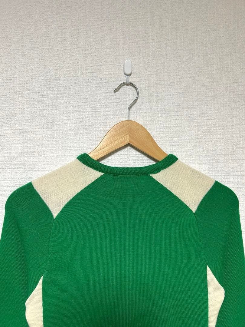 表記ありませんがアクリル素材のスウェットニット。脇、肩、袖で切り替わったデザインです。