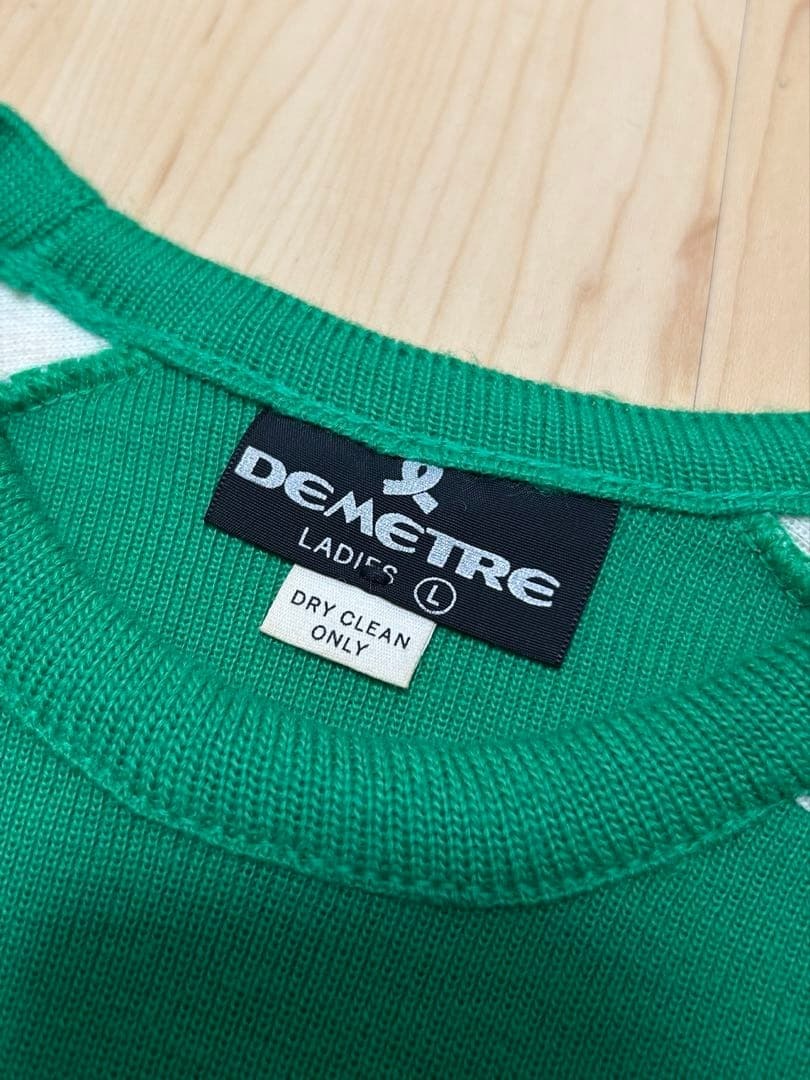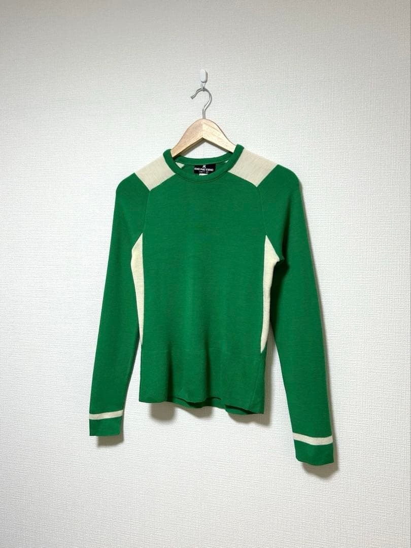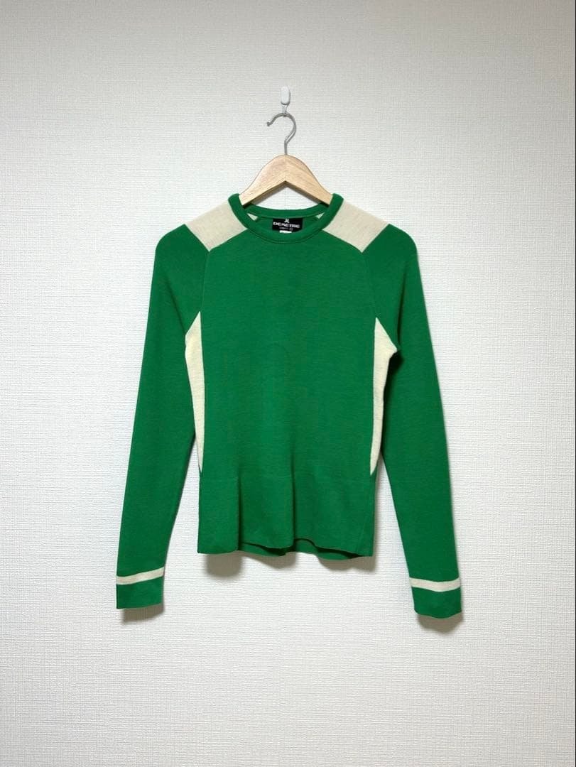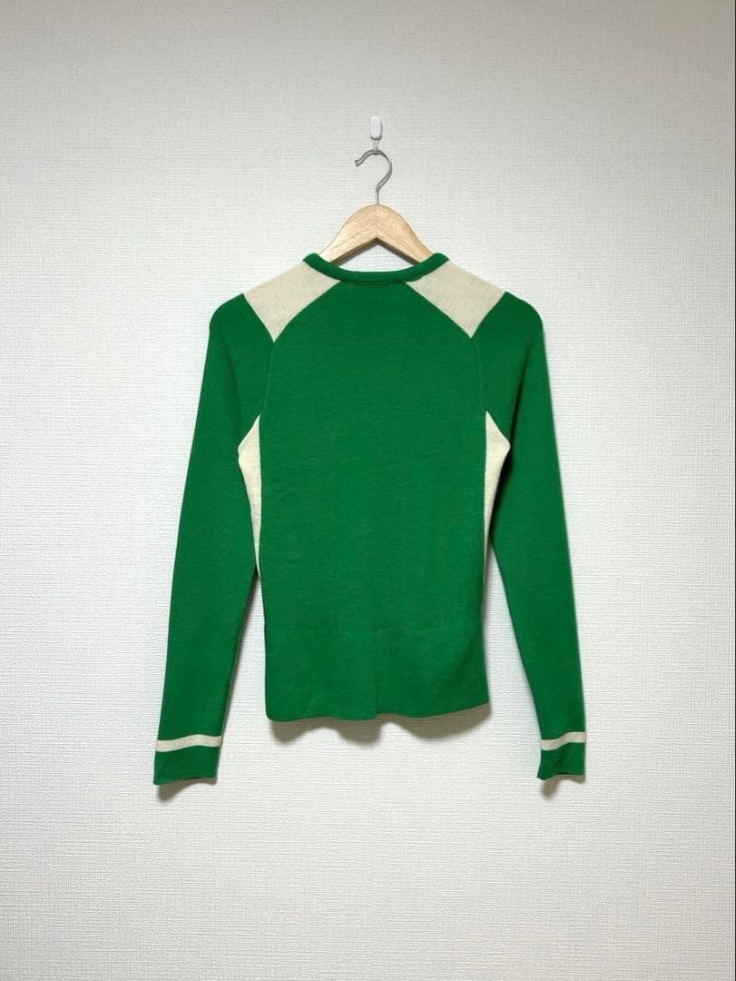 表記ありませんがアクリル素材のスウェットニット。脇、肩、袖で切り替わったデザインです。