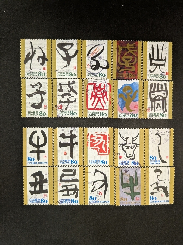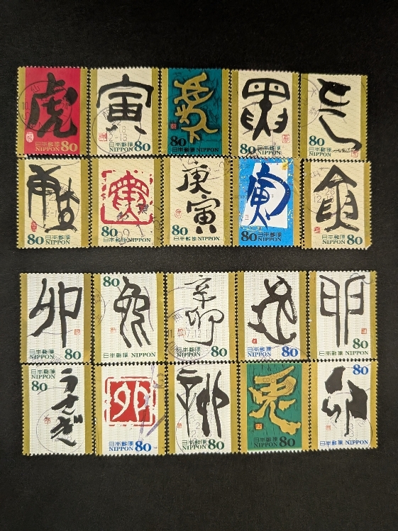 使用済み切手 「干支文字(子丑寅卯)」 40種完 40枚