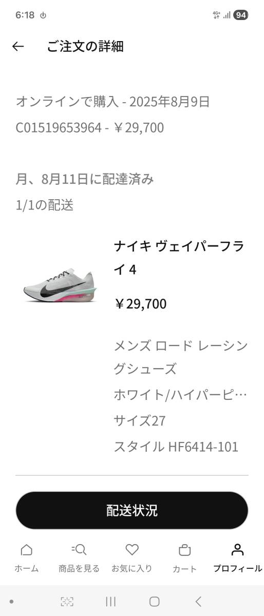 ★ ナイキ ヴェイパーフライ4 新品です。 8月初旬に購入し昨日使おうと思い開けたところ、サイズが小さそうだったので出品いたします。